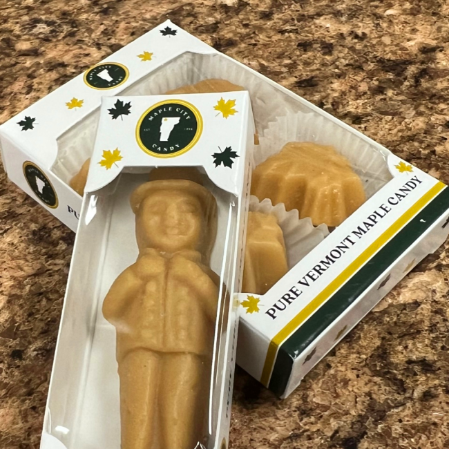 Vermont Maple Candy – Large Maple Leaf – 1.5 oz Savor the rich, authentic taste of Vermont with our Large Maple Leaf Vermont Maple Candy. Weighing 1.5 oz, this beautifully crafted candy is made from 100% pure Vermont maple syrup, offering a smooth, melt-in-your-mouth experience. Shaped into a classic maple leaf, it’s a perfect representation of the region’s natural sweetness and charm. Whether you're indulging in a personal treat or gifting it to someone special, this large maple leaf candy is a delicious way to enjoy the pure goodness of Vermont maple syrup. Pure Vermont sweetness. A leaf-shaped treat that’s big on flavor. Net Wgt. 1.5 oz. INGREDIENTS: pure Vermont maple syrup. Nothing added. ALLERGEN INFORMATION: Made in a facility that also processes: Peanuts, Tree Nuts, Soy, Dairy, Wheat.
