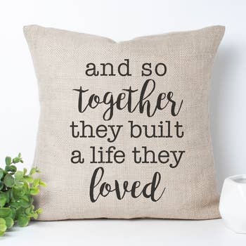 Made in United States Color: Beige and Black Fabric: Linen Occasion Theme: Everyday Pattern: Letter Print Pillow Shape: Lumbar Season: Summer and Year-Round Style: Cottage Theme: Family & Friendship Tone: Heartful Product Language: English Weight: 453.59 g (1 lb) Dimensions: 45.7 x 30.5 x 7.6 cm (18 x 12 x 3 in)
