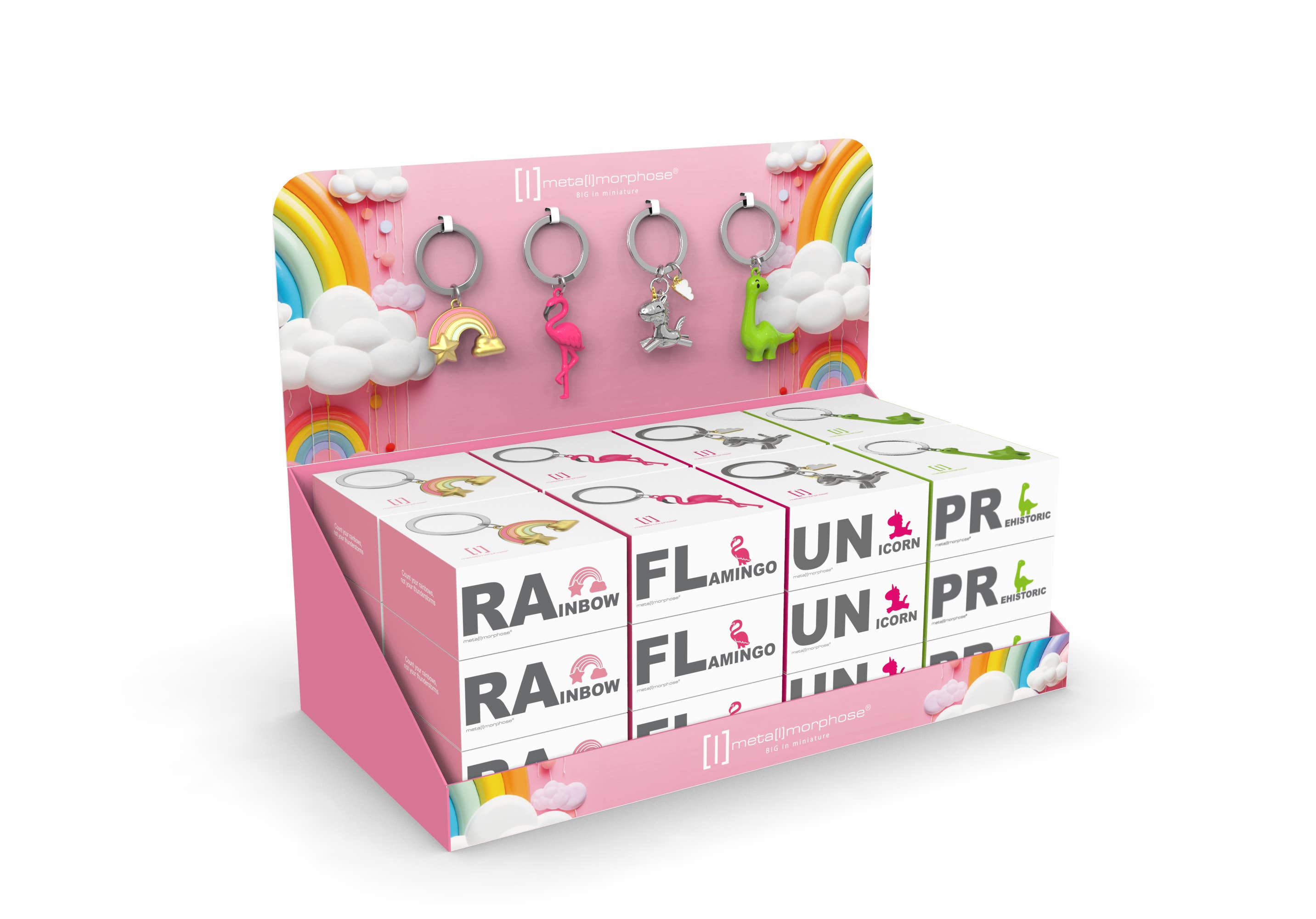 "Metalmorphose" Belgium Brand 3D Metal Keychain. Every pack carries an inspirational quote. A state of art metal craftsmanship. Lifestyle Products. Theme display box includes: A box with 24 units (4 Styles x 6 pcs. each style) ready to display. 4 samples(1 pc.x style) are fixed to the header+empty box with instructions. Music theme includes: MTM219-04, MTM218-01, MTM074-02, MTM048-01 (6 pcs. each SKU) Display measurements: Approx. H 11 inc. x L 14 inc. x W 7 inc.