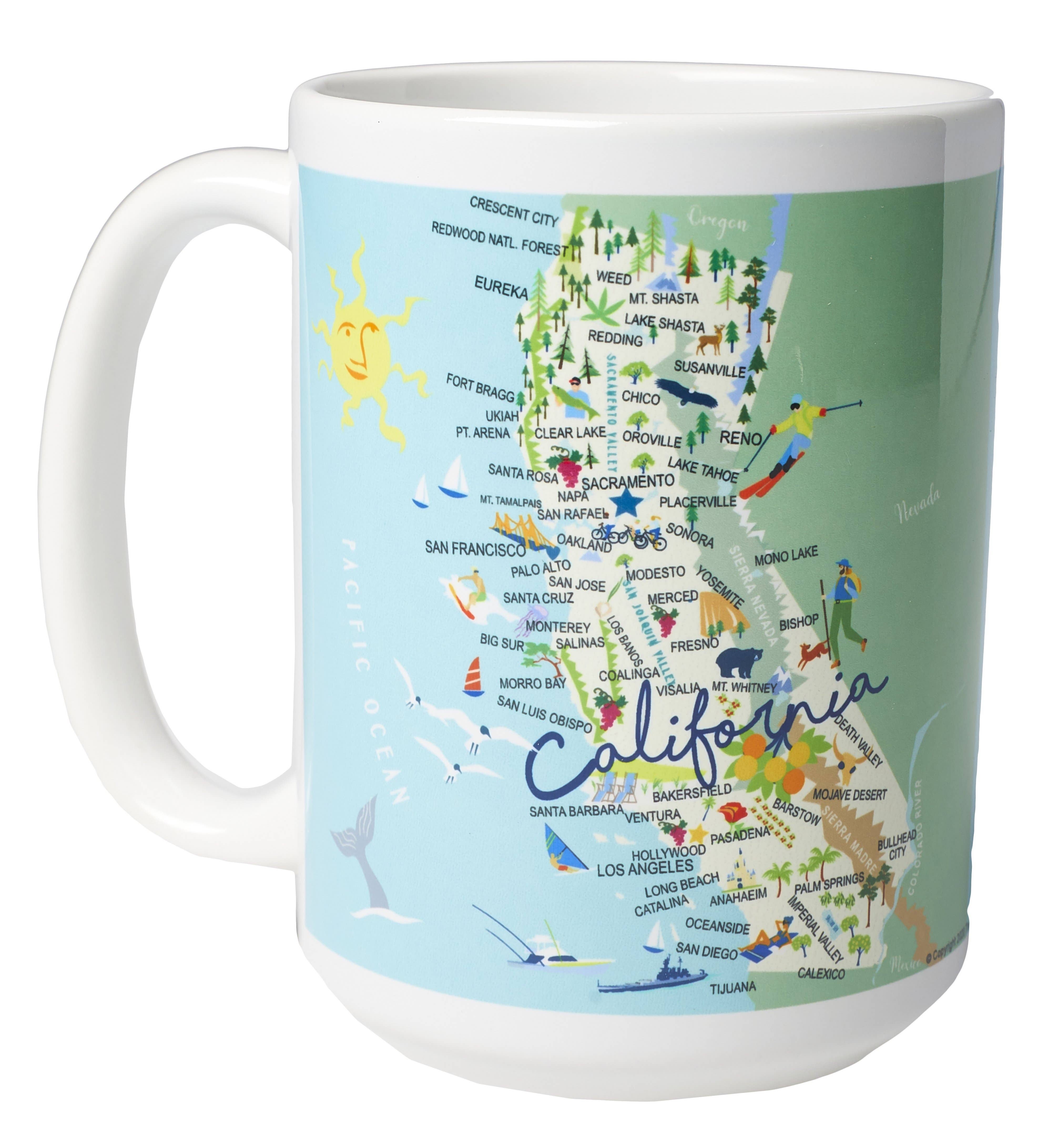 Our ceramic Surf Bear Mug was inspired by vintage artwork from the 1913 sheet music cover of California's state song, "I Love You California." Gift boxed 3.75" x 3.75" x 5.25" Microwave and Dishwasher Safe - May Get Hot. Imported. (MSRP $15.95)