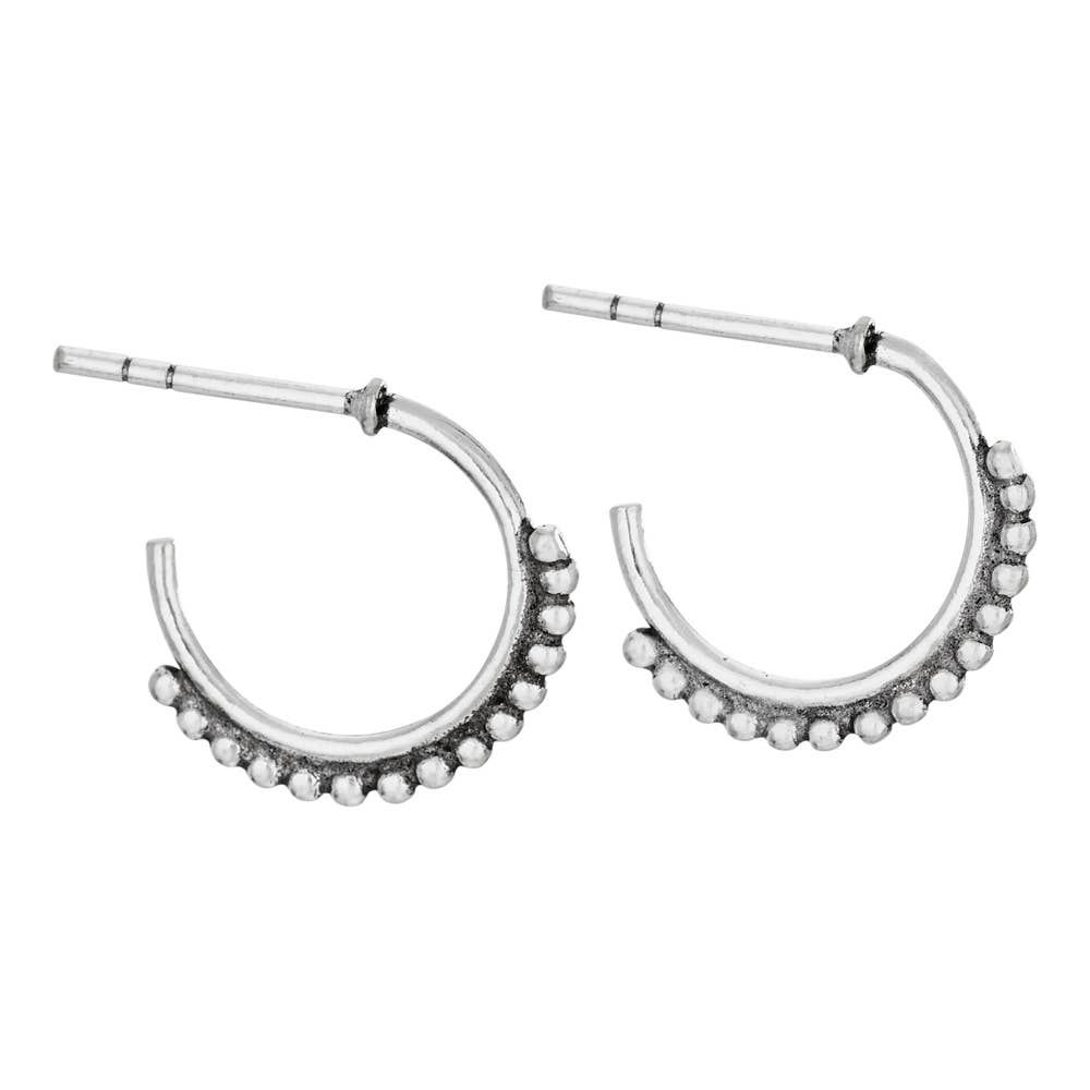 Sterling silver hoops with tiny dot decoration earrings. Handmade jewelry, jewelry, brass jewelry, silver jewelry, sterling silver, gold plated, handmade, handmade gifts, fair trade, bohemian, boho, fashion jewelry, fashion, slow fashion, ethical, India, Thailand, artisan, artisan made, necklace, bracelet, ring, earring, anklet, ear cuff, ear climber, ear jacket, spinning ring, spinner ring, stacking ring, stacker ring, holiday gift, Christmas gift, gift, unique jewelry, boho jewelry, trendy jewelry