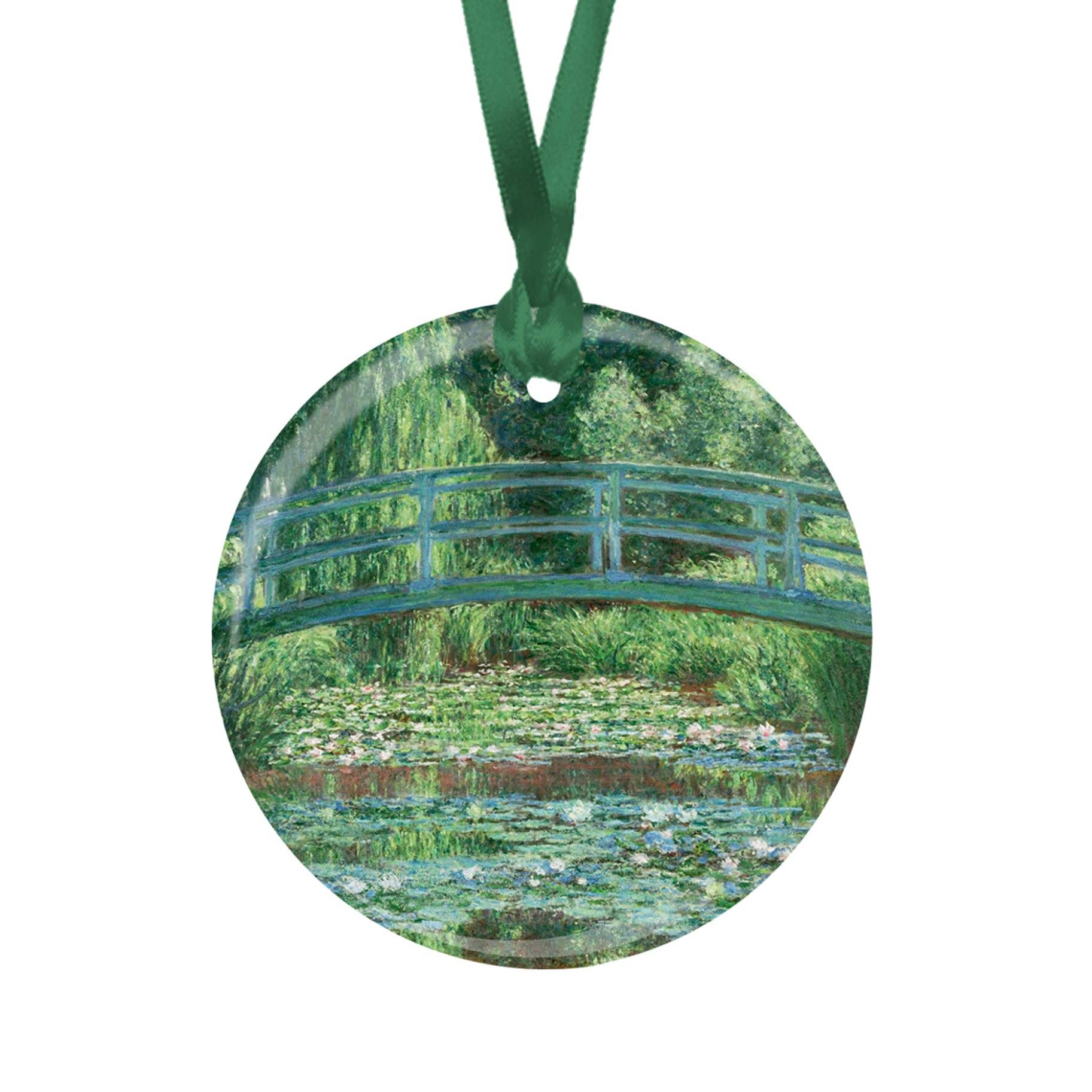 A 3 inch round all aluminum. 45 Mil thick ornament, gloss finish. The same image printed on both sides comes with a hanging ribbon.