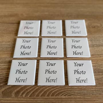 Who ever said magnets had to be boring? Turn your favorite LOGO or BRAND IMAGE into a custom 2"x2" square photo magnet! Simply choose your quantity per design, then email us your desired design(s), and we will make it happen! Whether on lockers, office cubicles, or refrigerators, custom photo/logo magnets are a whimsical way for you and others to surround yourself with the snapshots of joy that make life truly memorable! All magnets are handmade with high-quality glossy photo paper and premium durable supplies, giving a polished and professional look and feel. Price is per magnet. Buy more, save more! EMAIL all high resoltuion images to mystuckonjoy@gmail.com to begin production! Questions? Reach out to us! mystuckonjoy@gmail.com