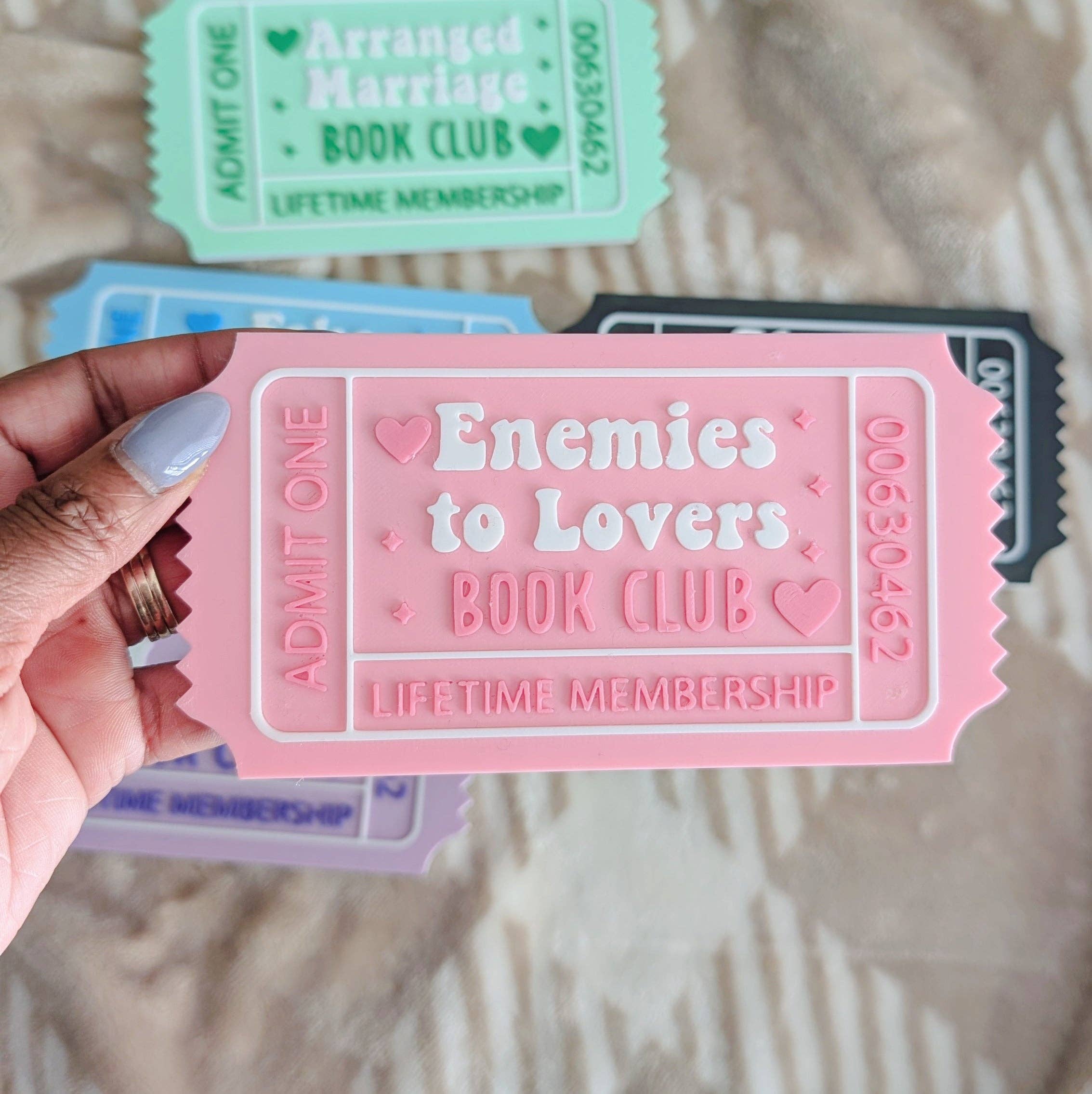 📚✨ Calling all book lovers! Add a unique touch to your bookshelves with these 3D-printed bookshelf sitter. Perfect for book lovers and home library enthusiasts. Choose from 8 different designs: Bookish Fantasy Fiction Romance Smut Book Nook TBR 🔹 Details: Each piece stands 2 inches tall and is 3/4 inch thick, with length varying by word. ✔️ Material: High-quality, durable 3D-printed plastic ✔️ Color Options: Choose from a variety of colors ✔️ Customization Available! Want a specific trope? Let us know! 📖 Whether you're a romance reader, fantasy fanatic, or thriller enthusiast, these adorable bookish decor make the perfect gift for bookworms, bookstagrammers, and collectors alike! ✨ Order yours today and bring your bookshelf to life!