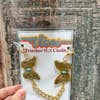 Embossed Gold Butterfly with turquoise accent trucker hat chain. This is the perfect hat chain to spruce up any of your favorite western inspired trucker hats. All trucker hat chains have lobster claw clasp so they can be moved from trucker hat to trucker hat. Each chain is individually packaged for resale. Pictured here on our Cool Mom and Not For Everyone trucker hats. Also check this super cute chain out in SILVER!