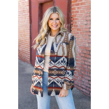 WHOLESALE WESTERN AZTEC PATTERN LONG JACKET