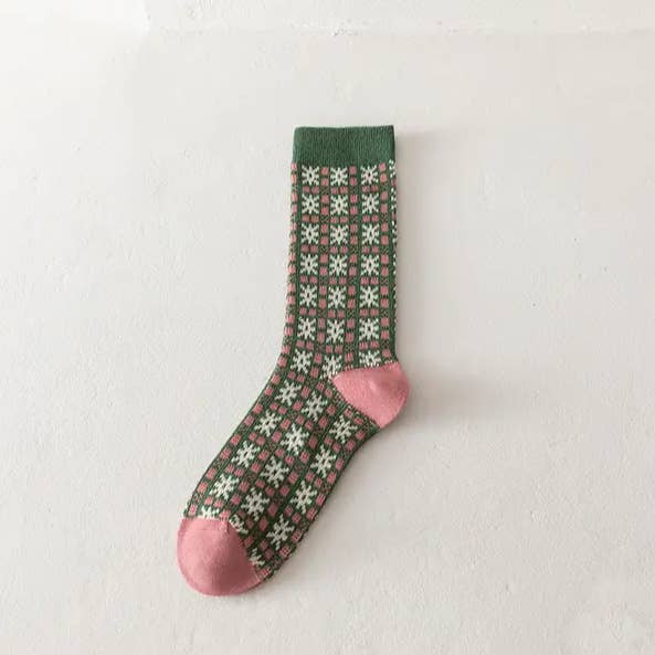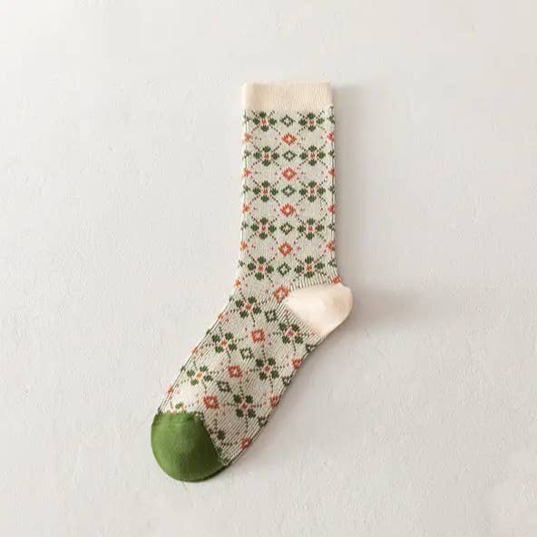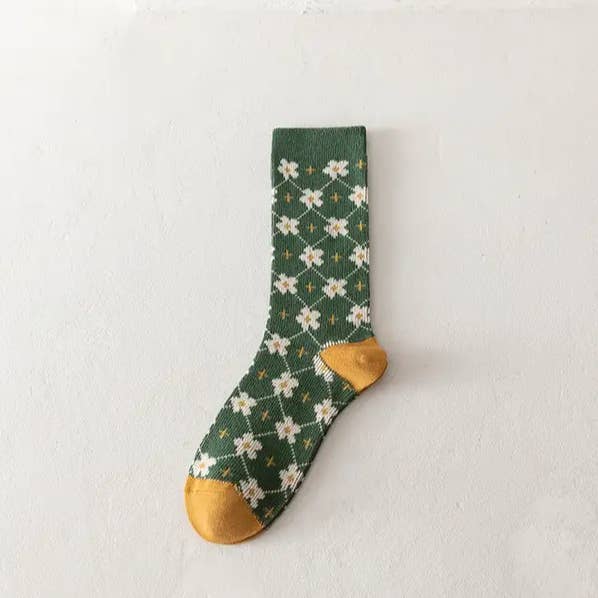 Fabric name: cotton Function: sweat absorption Pattern: plants and flowers Packaging form: bagged Applicable gender: female Main fabric composition: cotton Tube height: medium tube Number of needles: 156N Product category: ordinary casual socks Size: 36-40 Weaving method: single needle