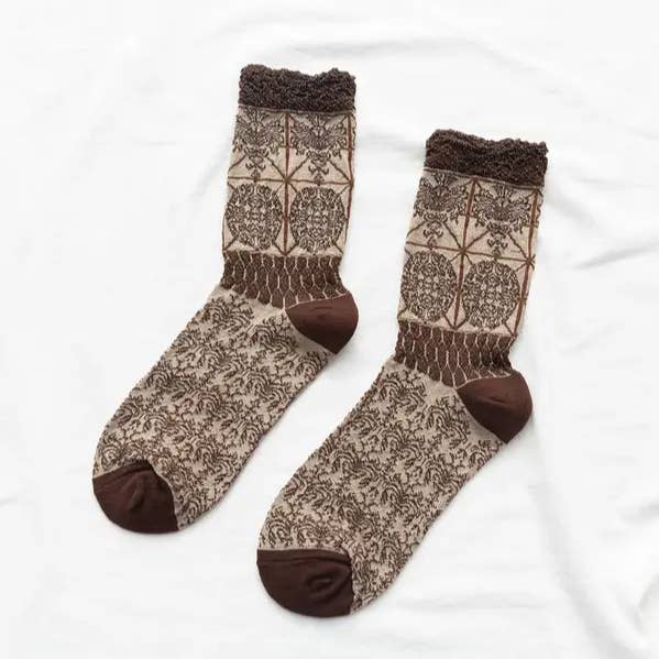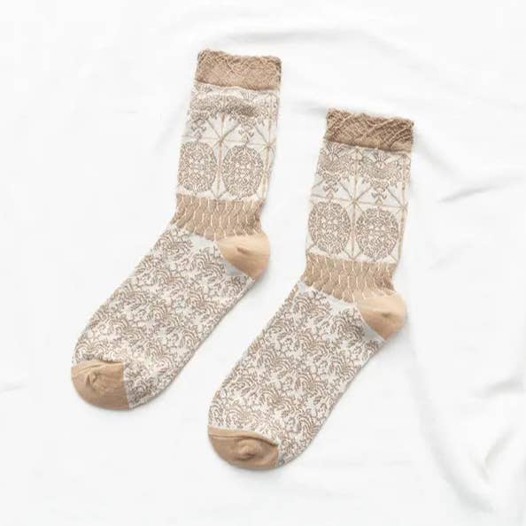 Wholesale Embroidered small flower vintage socks embossed hollow socks