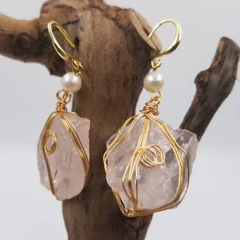 Each set is one pair of hypoallergenic hand formed 14k gold fill or sterling silver Rose Quartz Teardrops are light pink in color. Rose Quartz is most famously known for is love healing qualities, making it a good gift for valentines day, mothers day, or anniversary gift. Each drop is approx 2.25" and comes on a branded earring card. These pieces are made with high quality materials that do not tarnish with wear, and are hand hammered making each pair a little unique. Also available as a set or necklace only, search "rose quartz" in my shop. To learn more about my shop and process please follow me on social media @seaflowerjewelry