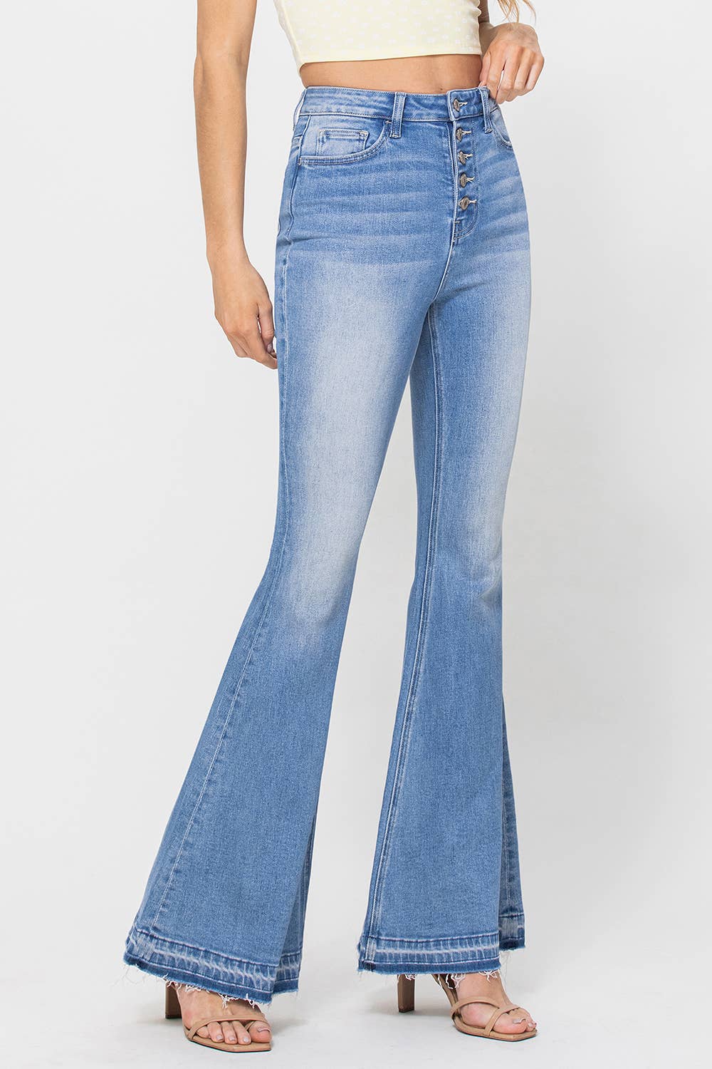 Saints & Hearts - Wholesale Jeans - Women's - SIP6127B DK DENIM FLARED BELL BOTTOMS WITH RIPPED KNEES2
