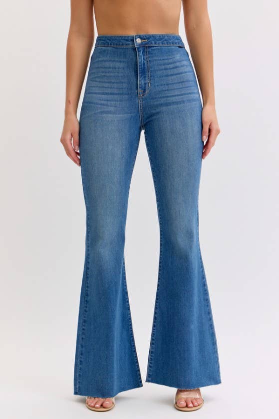 Saints & Hearts - Wholesale Jeans - Women's - SIP6127B DK DENIM FLARED BELL BOTTOMS WITH RIPPED KNEES