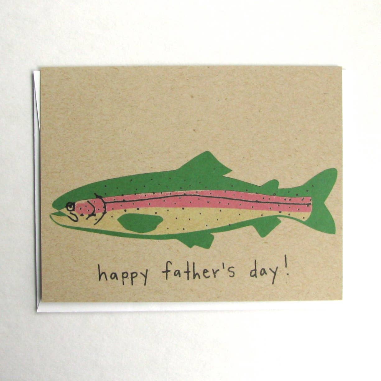 Beautiful trouts swim across this card for your dad who absolutely loves fishing. A2 size : 4.25 x 5.5" Blank interior Soft cream envelope included Made in the USA Printed with soy inks on high quality natural white cardstock