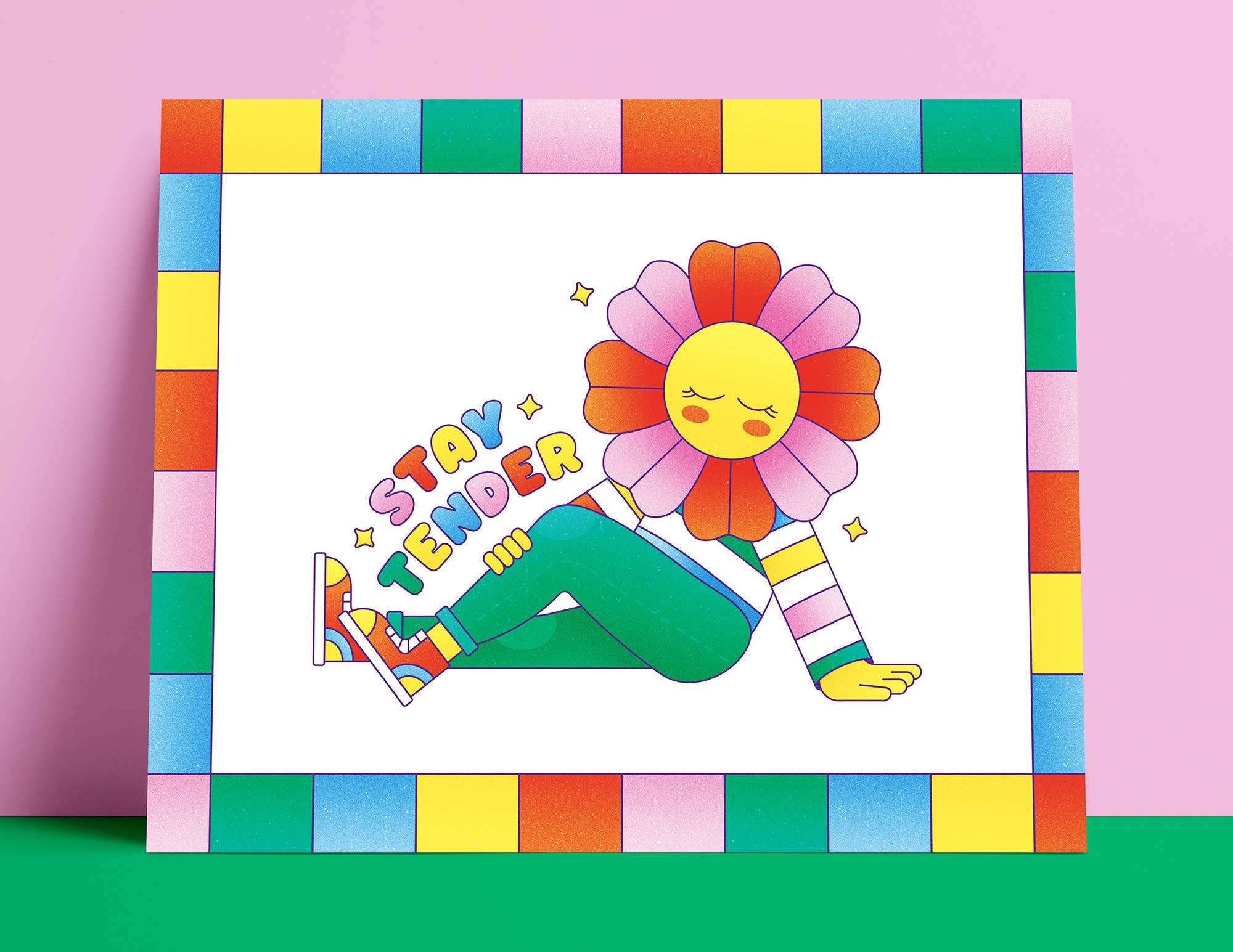 Sometimes the spot you’re standing in is exactly where you need to be. This tranquil scene acts as a space to remind you to take a deep breath, ground yourself, and stay awhile! Each print is bright & colorful, and is sure to add extra mindfulness to any room in your home. Just remember to be kind to yourself along the way ✨ • Includes one physical art print without frame • A3 print (16.5" w x 11.7" h) • Comes with squared corners • Printed on high quality semi-gloss luster paper • Paper is 10 mil thick