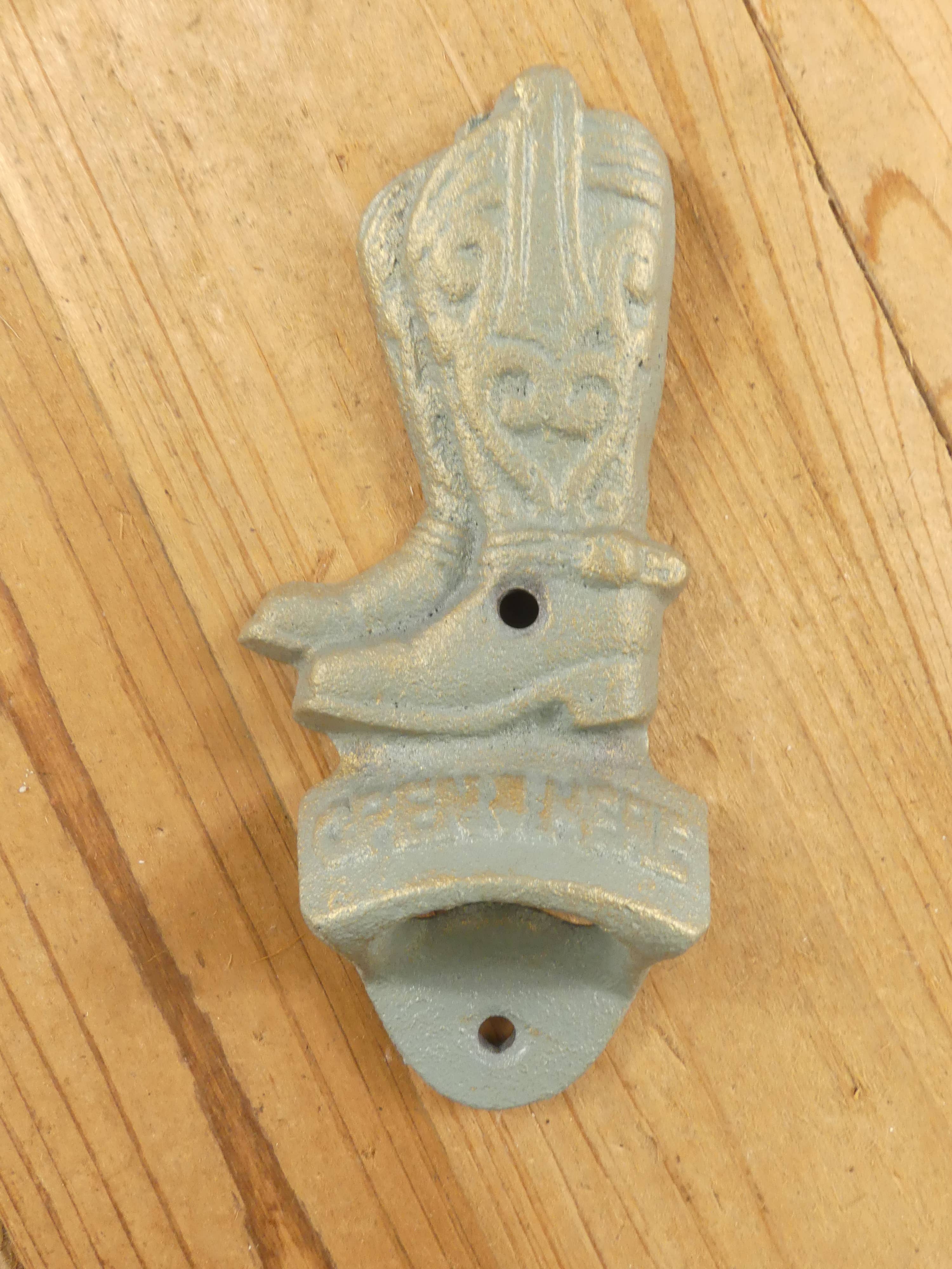 A nickel etched cowboy boot bottle opener is a unique and stylish way to open your favorite beverages. The bottle opener is made of nickel, which is a durable and corrosion-resistant metal. The boot design is etched into the nickel, which gives the bottle opener a Western flair. The bottle opener is easy to use. Simply place the bottle opener over the cap of your beverage and push down. The cap will pop off easily. The bottle opener is also easy to grip, thanks to the boot design. The nickel etched cowboy boot bottle opener is a great gift for any cowboy or cowgirl. It is also a great addition to any home bar or man cave. 6" | Handmade using sustainable materials | FOOD SAFE CARE INSTRUCTIONS: - Wash each piece before use - Hand wash separately using cold water & mild soap ONLY | DRY with a soft cloth - OR simply wipe away any mess using a towel (w/ soap & water if necessary) Made in India