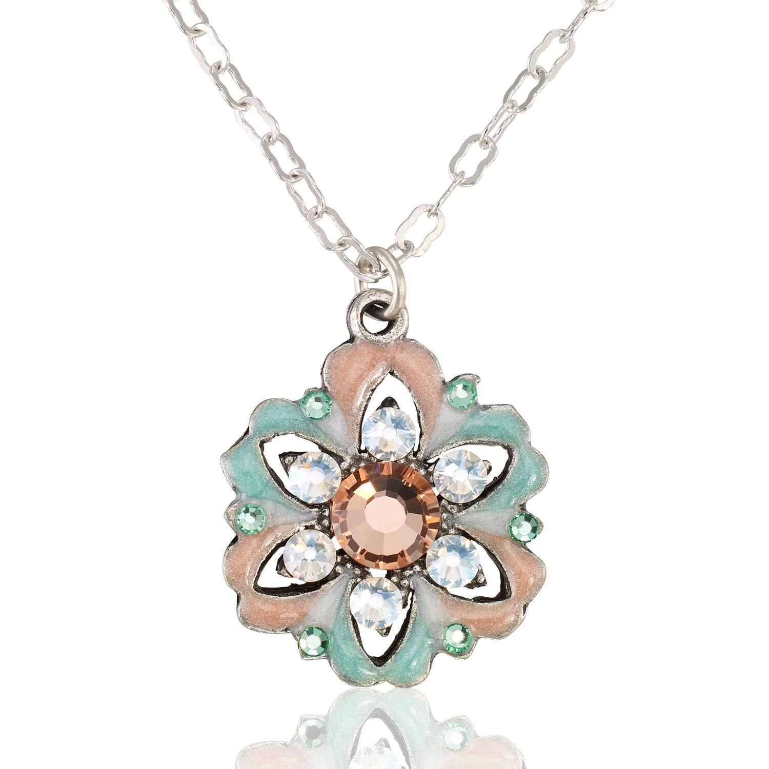 silver & brass plated flower statement 17-20" adj. chain