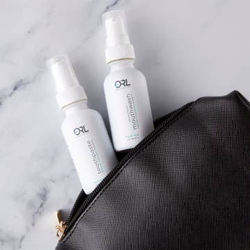 ORL's travel set is designed with today's consumer and retailer in mind and allows those planning safe local staycations and long-distance trips with the right essentials, such as these TSA-friendly sized items. The travel set is packaged in recyclable 1oz glass bottles of Fresh Mint mouthwash concentrate and Fresh Mint Toothpaste with hydroxyapatite designed with mess free pumps to last for more than 20 days. ORL's proprietary formulation of organic xylitol, plant-based essential oils, and vitamins and minerals are included, along with an innovative concentrate developed for the ORL mouthwash. Fluoride Free Alcohol Free Gluten Free Paraben Free SLS Free Triclosan Free Sulfate Free