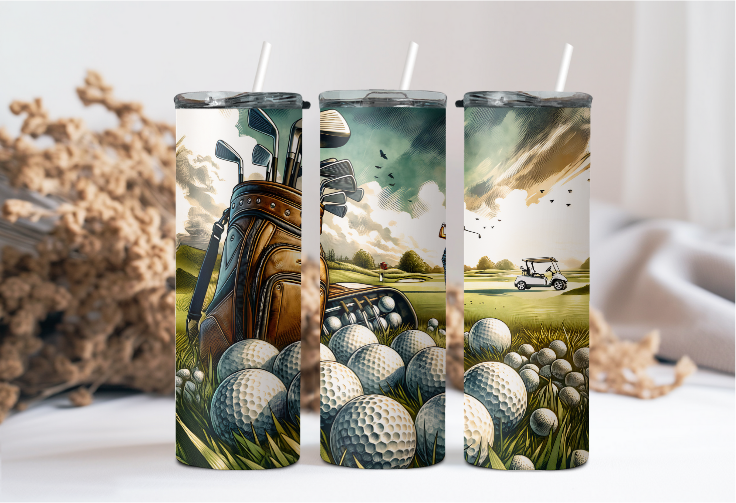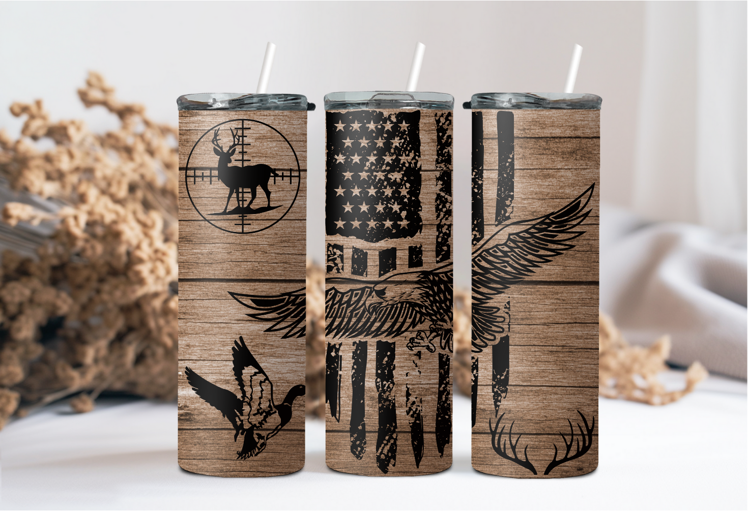 20oz tumbler. Each cup comes with a lid and straw; these are stainless steel and insulated. Each design is sublimated directly to the cup.