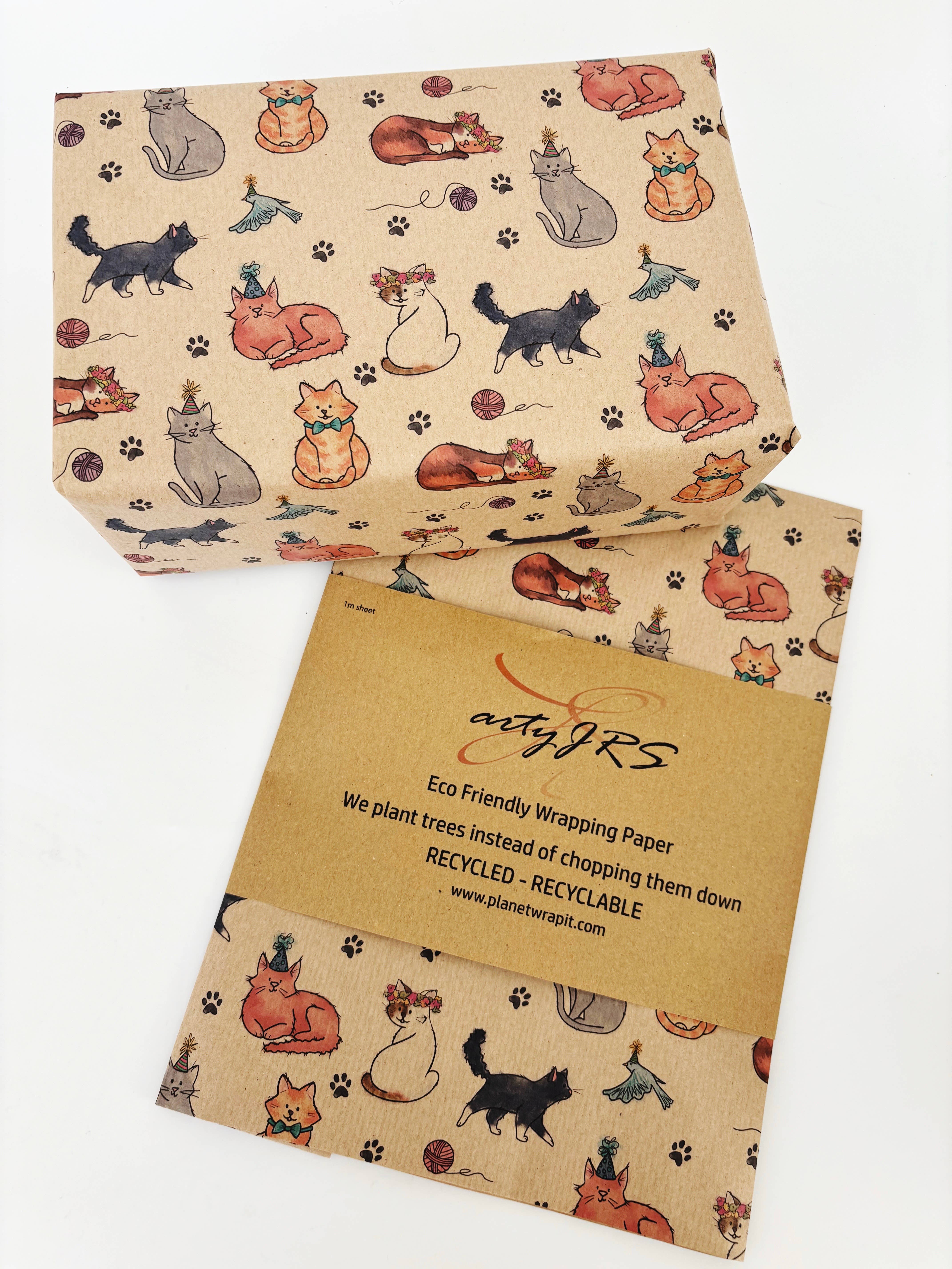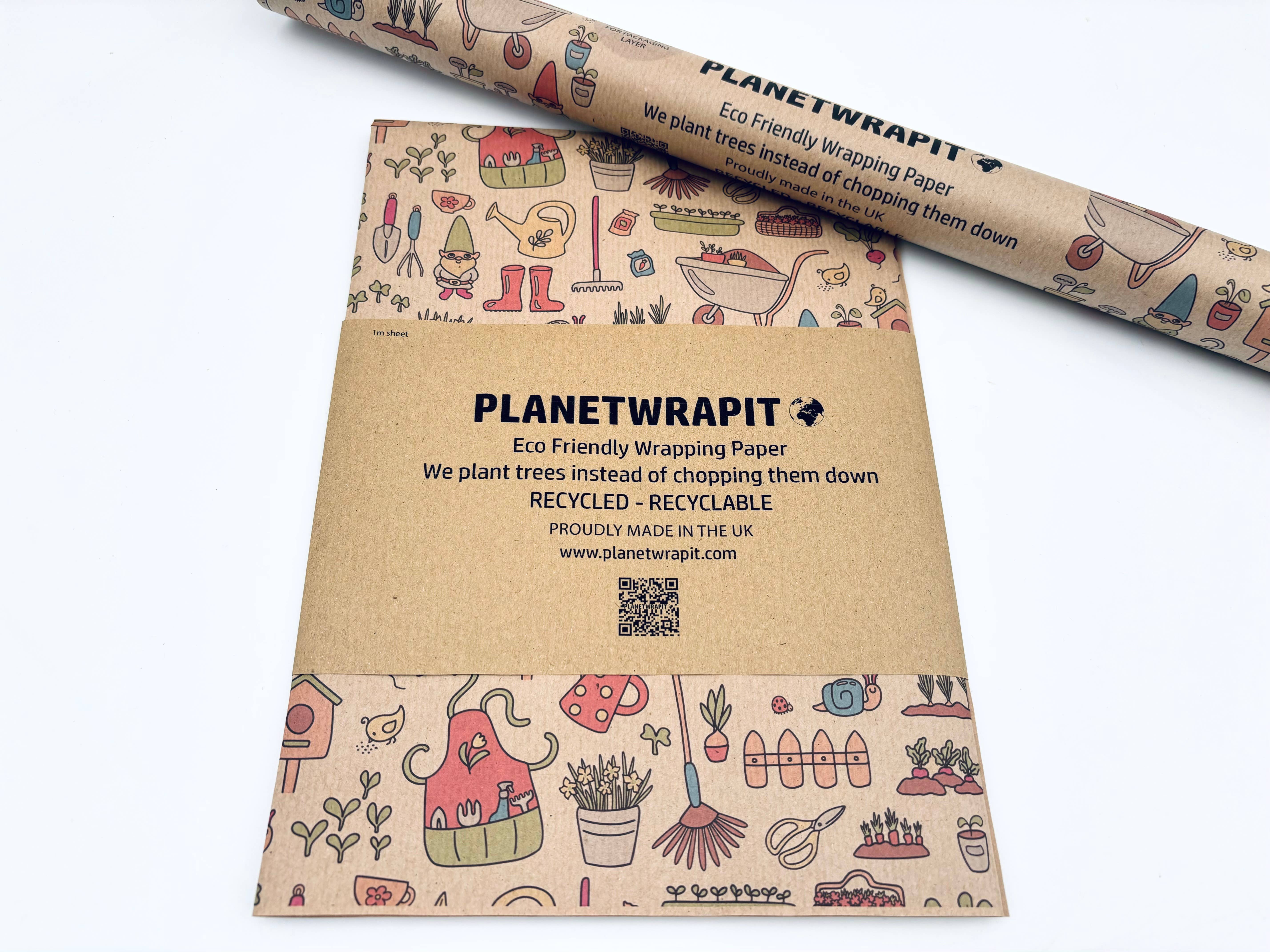 A multi-purpose print on our natural, recycled kraft wrapping paper. The kraft paper and ink we use for PlanetWrapIt gift wrap is made using toxin free water based inks which can be effectively recycled alongside your house hold paper waste. Eco-credentials Free from solvent based inks, glitter, foil and other non-recyclable contaminants. Free from plastic packaging. Fully recyclable with household paper waste. The ink cartridges we use are made with recycled ocean plastic and are further recyclable. Supports UK based small businesses. If paper tape is used with planetwrapit paper, all of the gift wrap and tape can be recycled with normal household waste. Paper which is soiled with food or grease should not be recycled. Made from slightly textured recycled kraft paper (50gsm) made from recycled materials (80% recycled materials, 20% kraft paper to add wet strength).