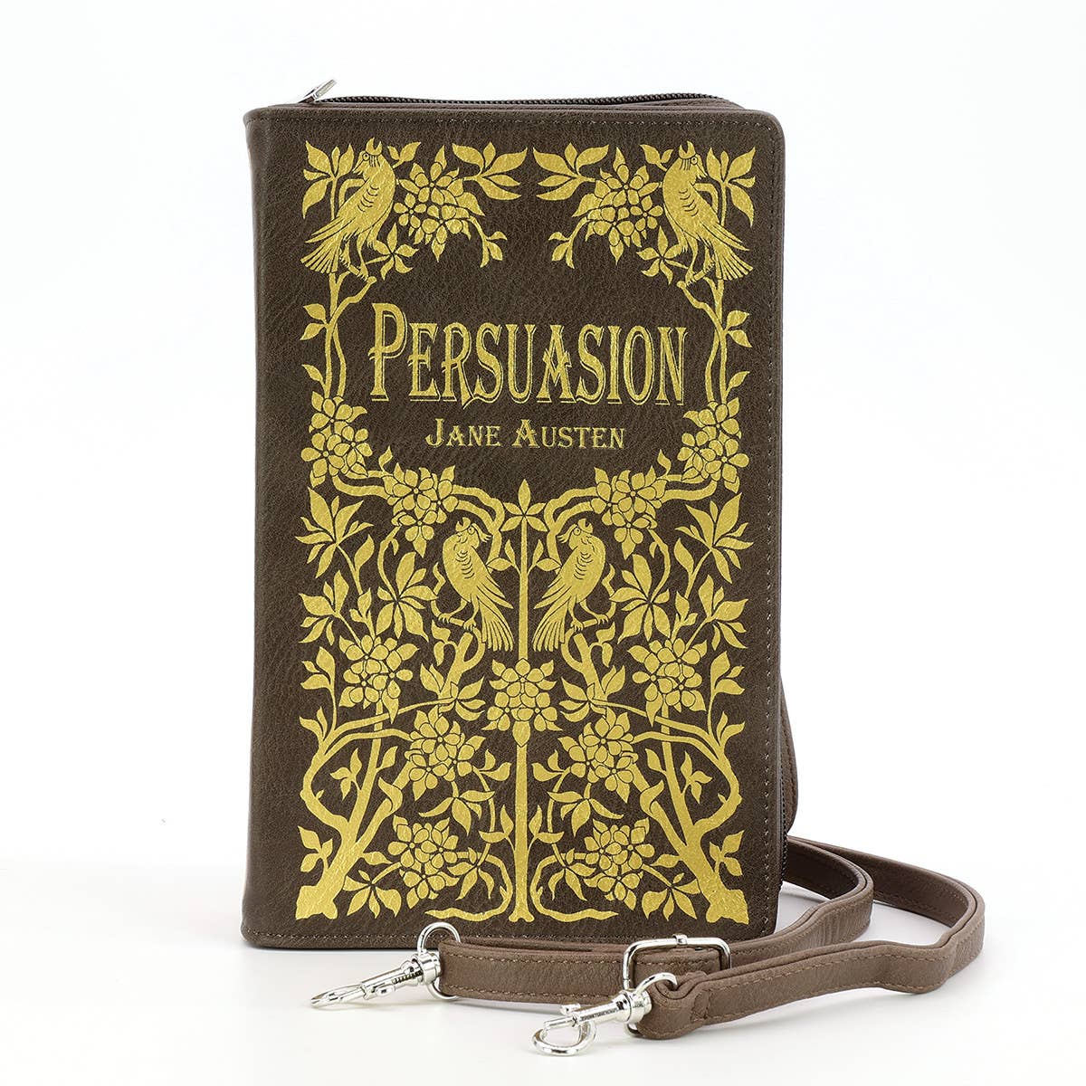 Bring literary sophistication with the Jane Austen Novels Book Clutch Bag! Featuring iconic novel details and a book-inspired design, this clutch blends style, function, and literary charm for boutique customers. ✨ Features High-quality vinyl material List of Jane Austen’s iconic novels printed on the back Zippered main closure Fabric lined interior Dual compartments with zippered middle compartment Includes detachable 6 in wristlet strap & 21 in adjustable detachable shoulder strap Approximate measurements: 6 in (L) x 2.5 in (W) x 9.5 in (H) ✨ Perfect For Retailers offering literary-themed or vintage-inspired accessories Bookstores and boutiques carrying classic novel handbags Customers who appreciate practical, book-style statement bags Keywords jane austen book clutch wholesale, literary clutch for resale, book-inspired purse wholesale, classic novel handbag, boutique literary accessory, giftable book clutch, Austen inspired bag, faux book clutch wholesale, statement book bag, iconic novel purse