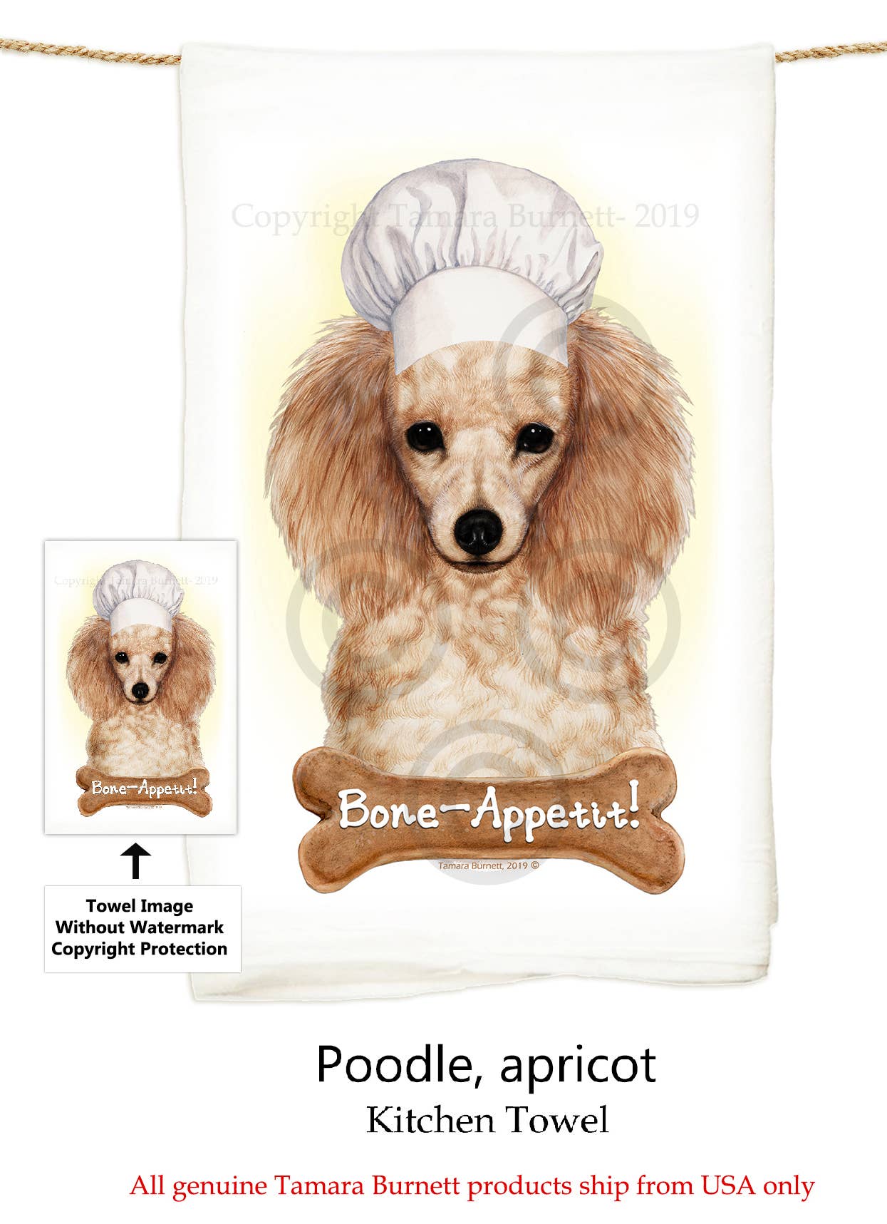 These 29"" x 29"" flour sack towels feature your favorite breeds. They are proudly made in the USA and feature the artwork of renowned artist Tamara Burnett. Bone Appetit !!! Recommended washing instructions: machine wash, air fluff to dry. Material : Cotton.