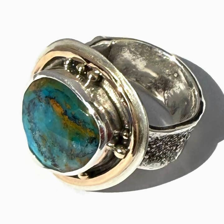 Teal Kyanite Reticulated ring with 14 k GF Bezel set stone
