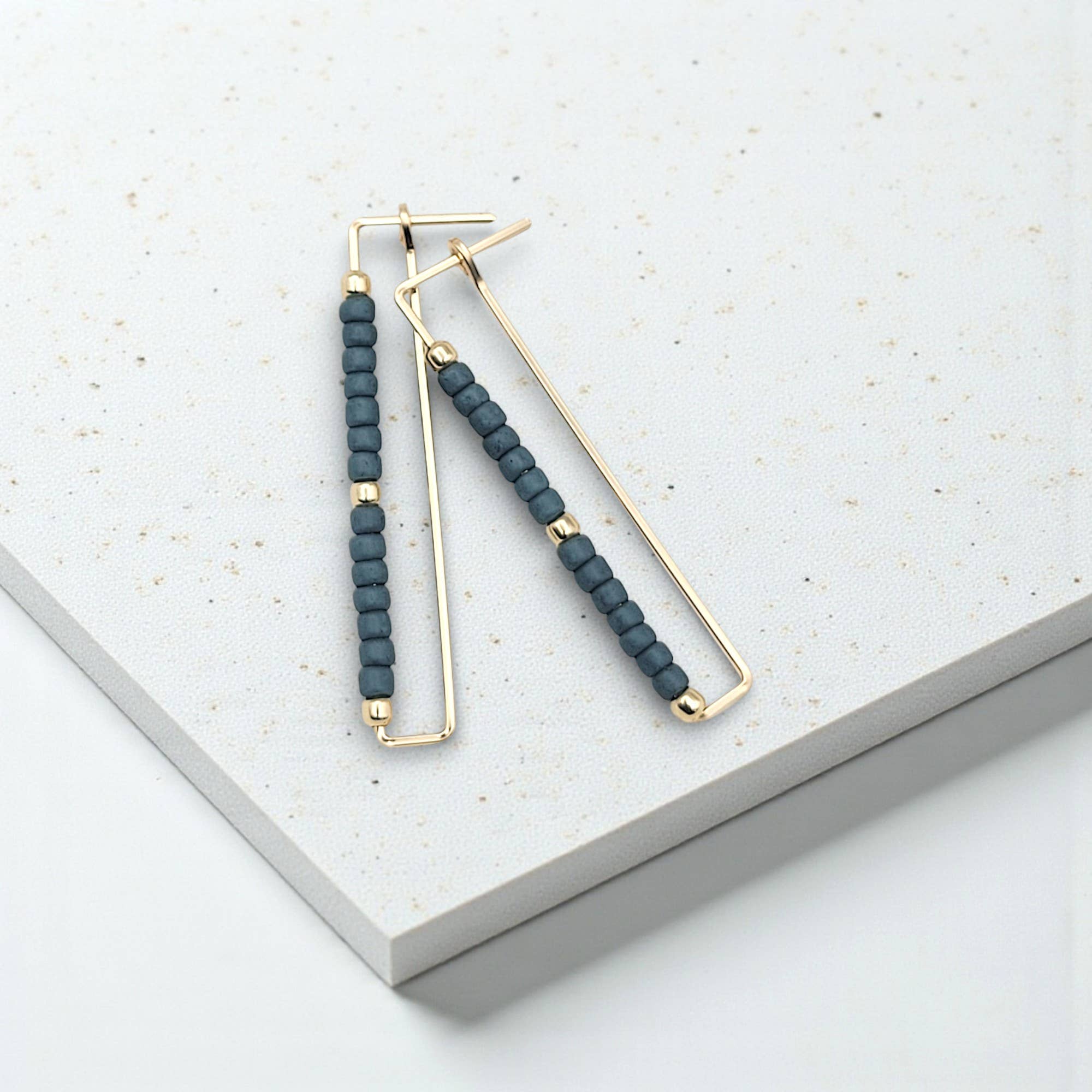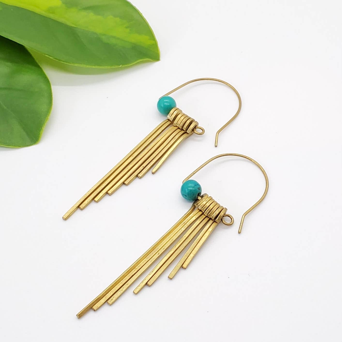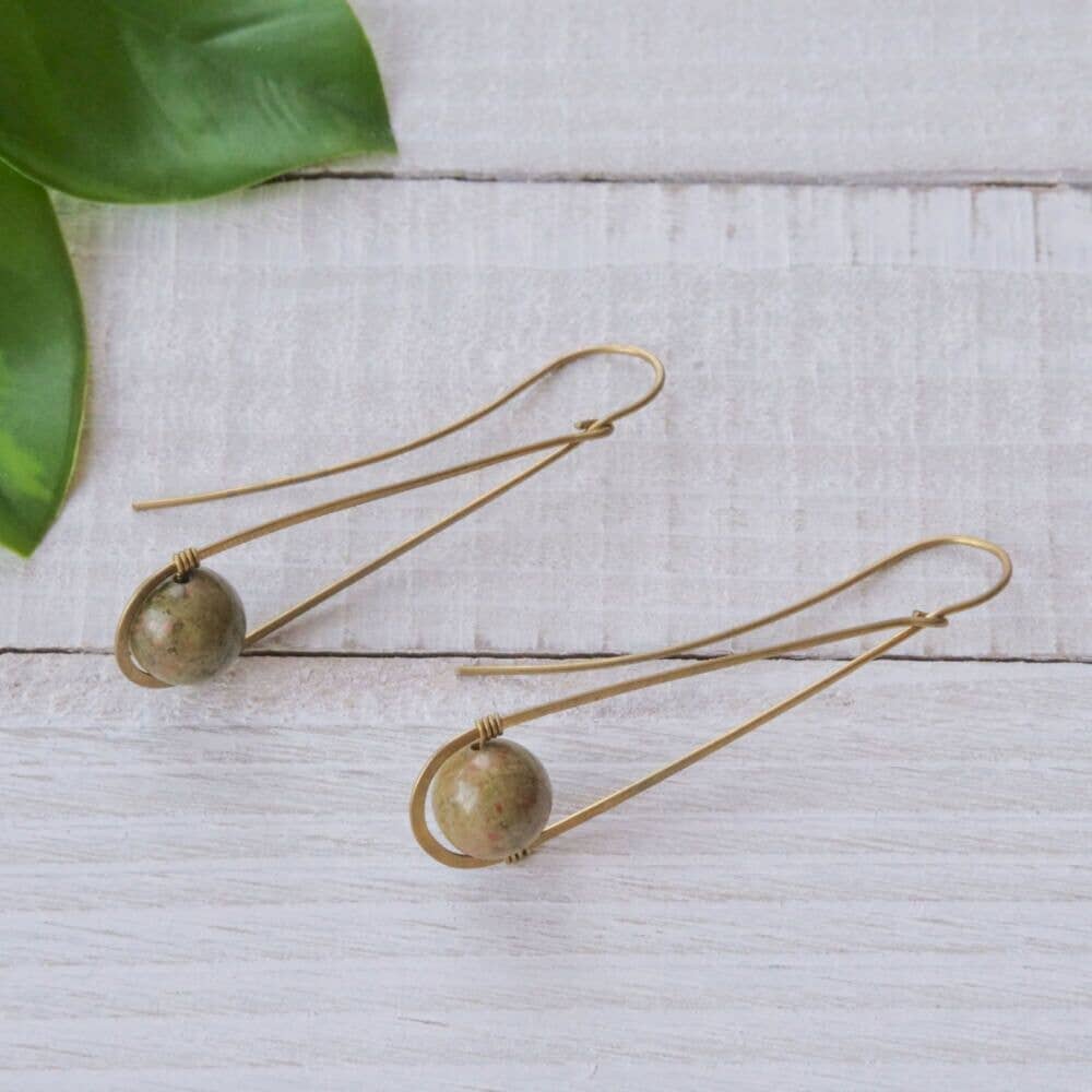 Brass stone bar earring. Designed in partnership with and handmade by a husband/wife duo and their team in Thailand. Brass, silver, & sterling silver and natural semiprecious stone earrings.