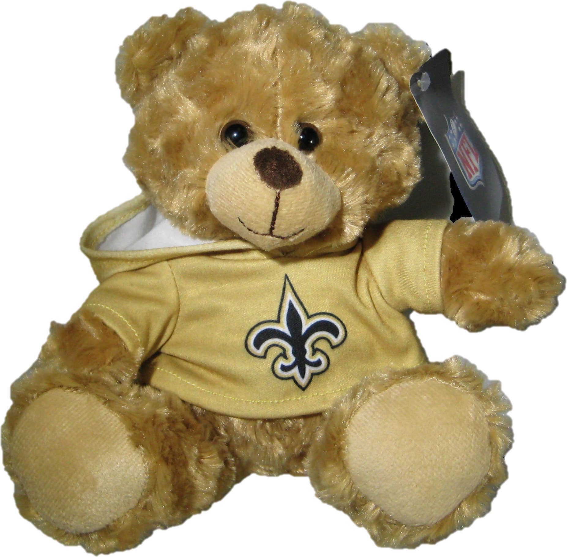 A 9-inch bear made of soft, light brown polyester fibers sounds absolutely adorable! And with those sweet brown eyes, nose, and smile, it's sure to melt hearts. Plus, the added touch of a colored hoodie sweatshirt featuring the official team logo makes it even more special for fans. Whether you're taking him to the game, snuggling up on the couch, or cuddling with him at night, this bear brings a cozy sense of team spirit wherever he goes. It's the perfect companion for fans of all ages, bringing joy and comfort with every hug. So, whether you're cheering from the stands or relaxing at home, this 9-inch bear is always ready to support your favorite team and spread some cheer!