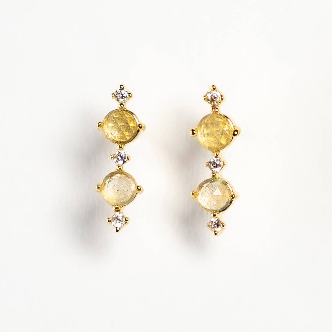 Looking for a pop of color? The Jane Studs feature beautiful baguette shaped gemstones with CZ and gold accents to illuminate their radiance.
