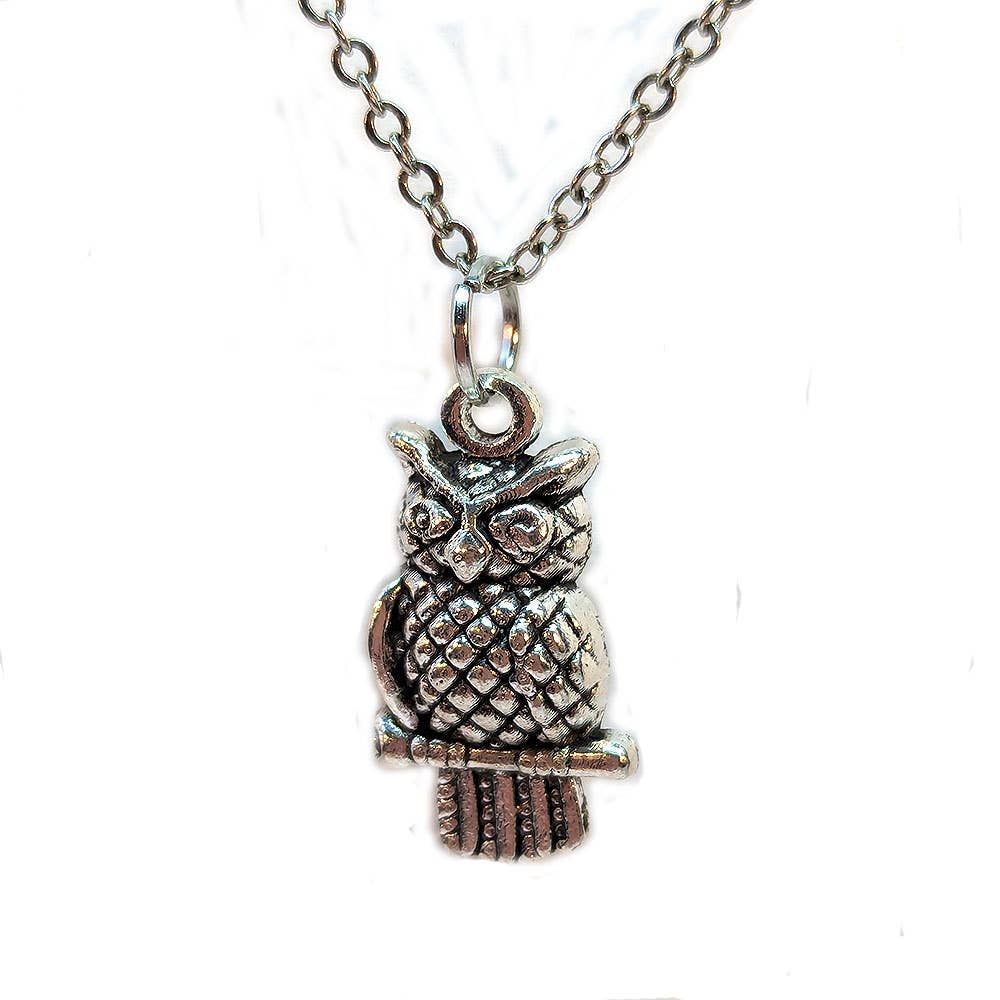 Who, who is the secret keeper of wisdom and magic? The owl charm necklace is your nighttime companion. • Jewelry: charm necklace • Size: 0.5" owl charm • Material: lead and nickel free • Metal: alloy • Finish: antique silver • Chain: 18" lobster clasp necklace