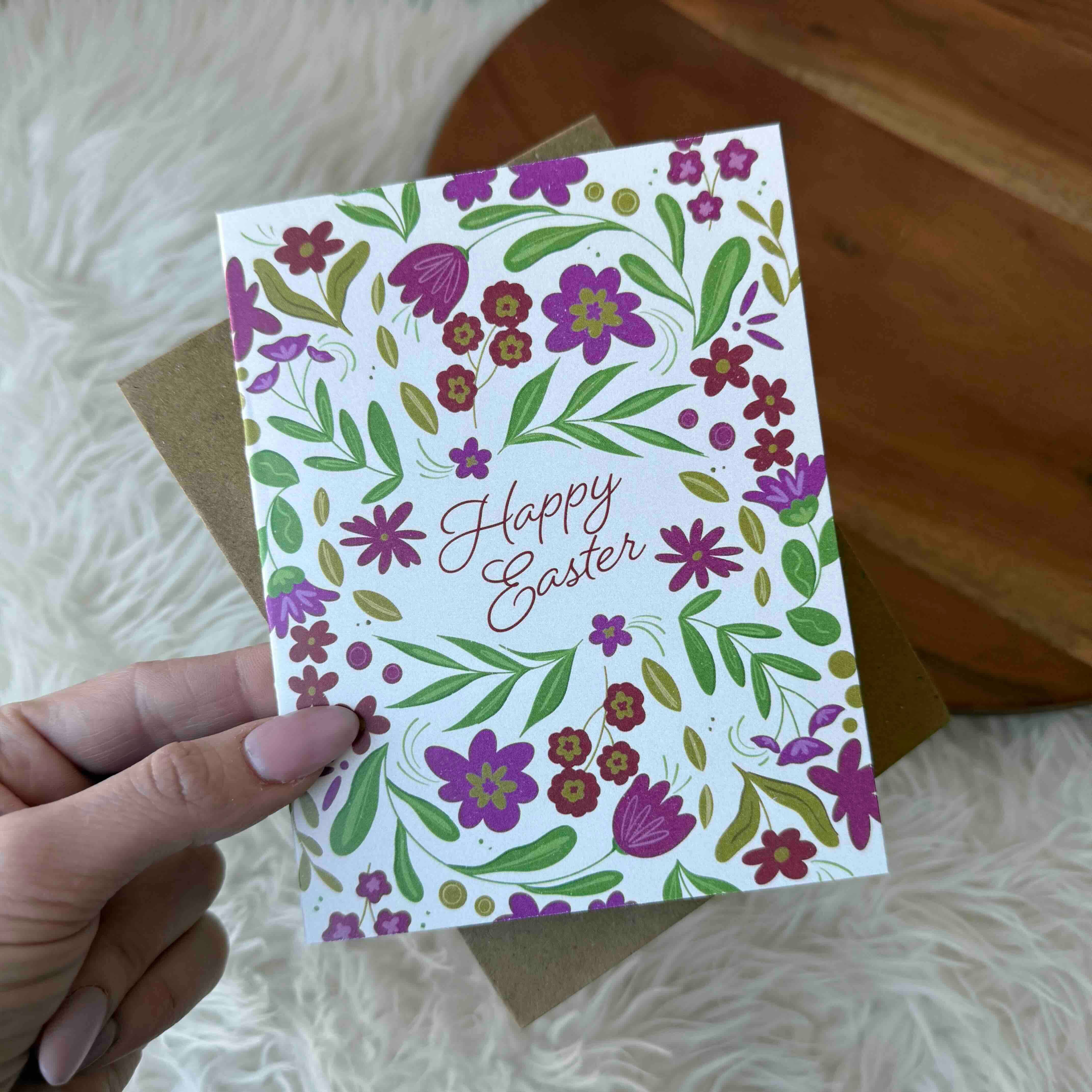 Illustrated card from our Easter collection with a print on thick card stock. Dimensions: 4.25" x 5.5". Blank inside. Soft white envelope included (A2).