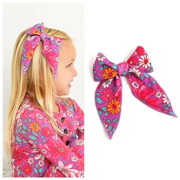 These are the absolutely sweetest bows! We are very excited to have them in our shop now. They are well made with beautiful fabrics.