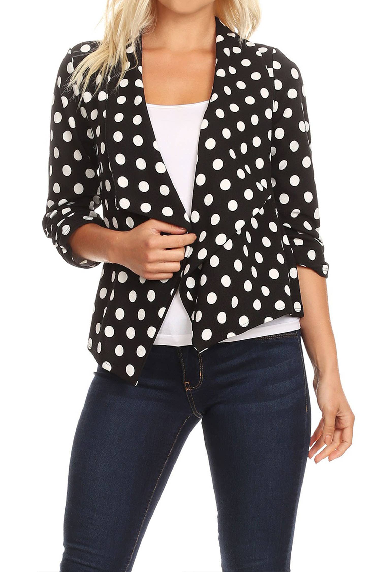This blazer jacket is designed for a relaxed yet stylish look. It comes in a solid color, providing a versatile option for your wardrobe. The jacket is tailored to be fitted, accentuating your shape while maintaining a comfortable feel. The open front design adds an effortless and chic element to the jacket, allowing it to be worn casually or dressed up for more formal occasions. Its long sleeves offer coverage and can be rolled up for a more laid-back appearance or worn down for a classic look.
