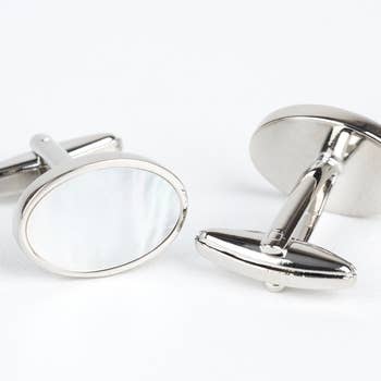 If you're looking for a stud set for a wedding or just because you need to replace and old one that has goen bad, this standard set is perfect. This luxurious set of mother of pearl centers wrapped in rib-textured gold-plated settings elevates any outfit to almost regal stature. Gorgeous links, and four studs to tie everything together. We offer bulk discounts and free shipping for multiple sets, so if you need more than one don't hesitate to give us a shout. They come in a handsome and hard-sided gift box. We also carry this mother of pearl cufflink and stud set in silver plating.