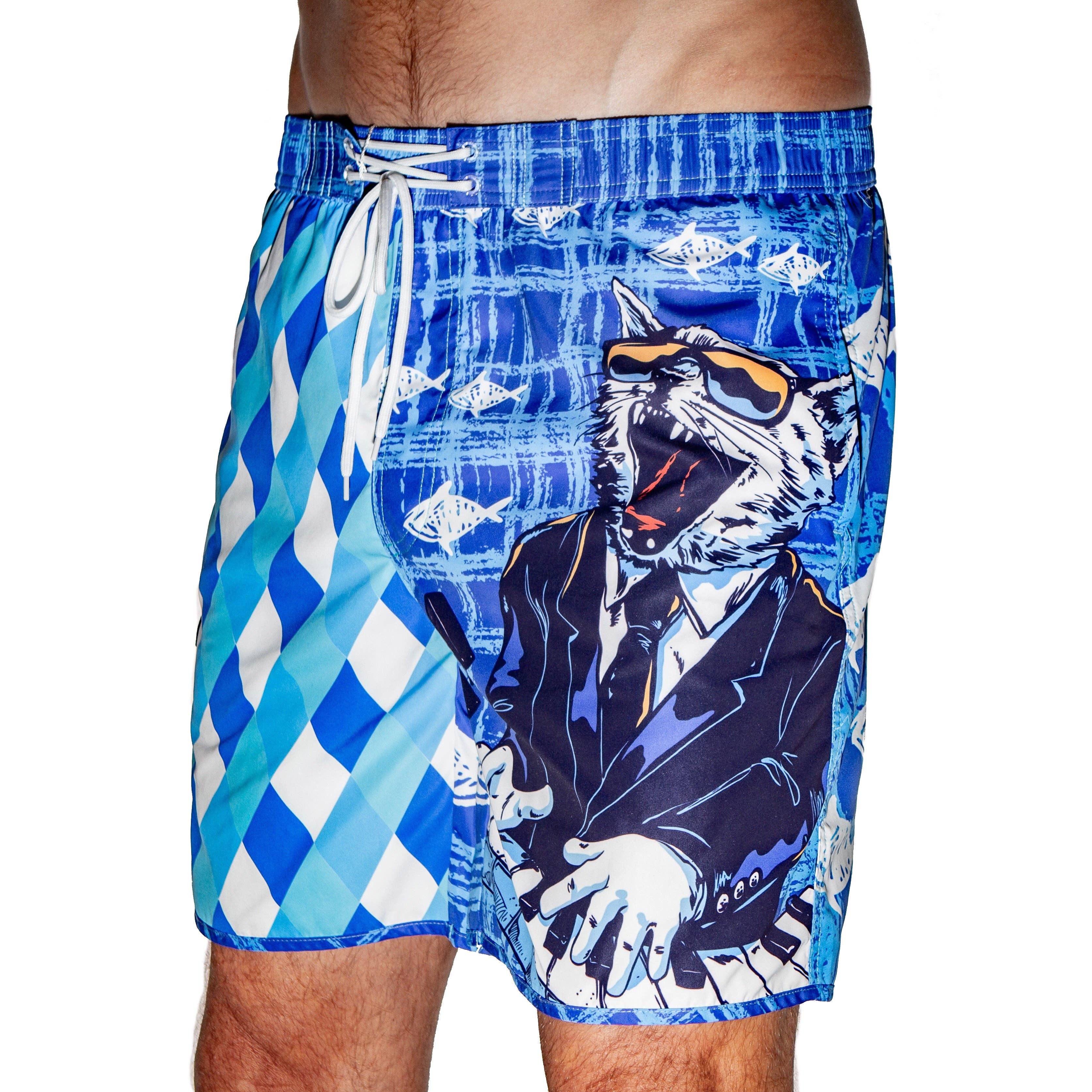 You can’t go wrong when you have a sailor girl and classic wood boat on your trunks. Stylish design for the vintage, and not so vintage man too. Material: Poly outer / Poly lining. Awesome features include quick-dry, super soft fabric and lining, comfortable elastic waist with color-coordinated tie in front, 100% polyester, two outer pockets with velcro close, one inner pocket large enough to hold a credit card, ID, etc.