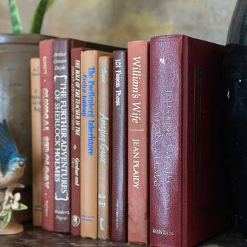 Vintage Northern European Leather-Bound Books These vintage leather-bound books from Northern Europe are elegantly wrapped in leather spines, prized for their durability, craftsmanship, and timeless aesthetic. Each volume showcases exquisite details such as gilded embossed lettering, decorative tooling, Italian marbled endpapers, and hand-sewn bindings. Offered in a rich palette of tans, browns, black, blue, green, and red, these books date from the 1880s to the 1960s. Selections may include multi-volume sets as well as unique, one-of-a-kind titles. Books are used and may show signs of wear. Books are sold individually, and you can pick the cover color. Please note that all books are printed in Scandinavian languages.