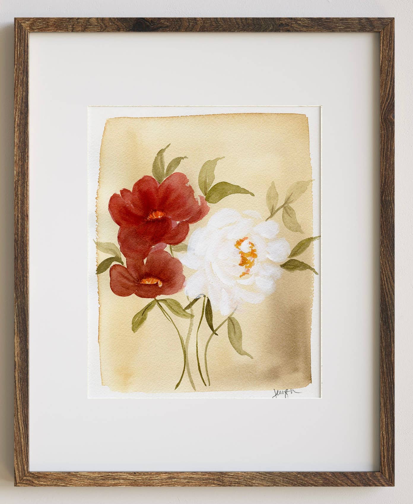 11x14 print on medium weight linen paper with added metallic gold accents. Packaged in a plastic sleeve with a cardboard backer.