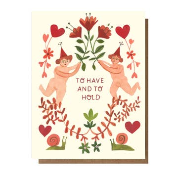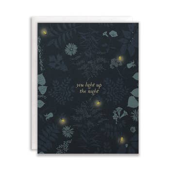 • 4.25" x 5.5” sleeved A2 card, blank inside and paired with a Kraft envelope. • Printed responsibly in the United States on 100# vellum with post-consumer recycled paper. • Illustrated by beloved Children’s book illustrator Esmé Shapiro. • Unsleeved option available. Please message us for details. Ships with protective cellophane sleeve. Please message us to have us mark your account as “doesn’t want sleeves.” A charming blue greeting card featuring a lovely embrace between a woman and a ghost in a field of flowers surrounded by fairies under a beautiful night sky and full moon, text reads "You Are Loved." Previous SKU: FREN011