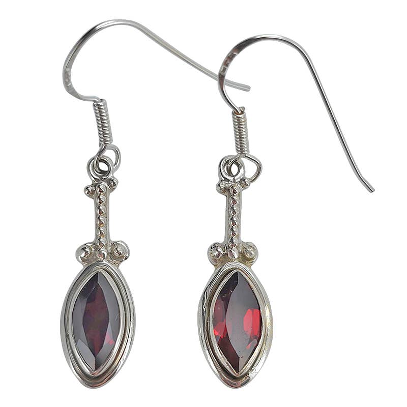 This delicate earring features a 5mm genuine semi-precious stone in a bezel setting surrounded by a beaded looking detailed pattern. The overall setting has an 8mm diameter and is soldered to a ear wire that has a hook closure. The overall length of the ear is about 6/8 of an inch from the top of the wire to the bottom of the setting. Please keep in mind that the natural semi-precious stones may vary slightly in shade and depth of color from piece to piece.