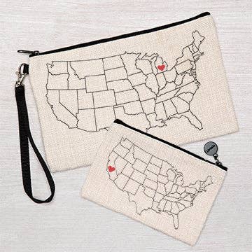 Custom Map Personalized Bag Wristlet Travel Pouch Makeup Bag
