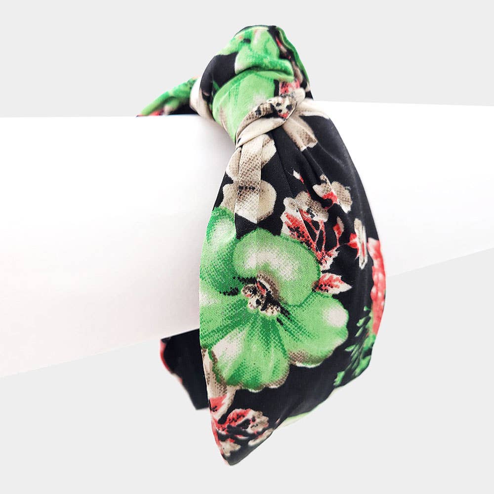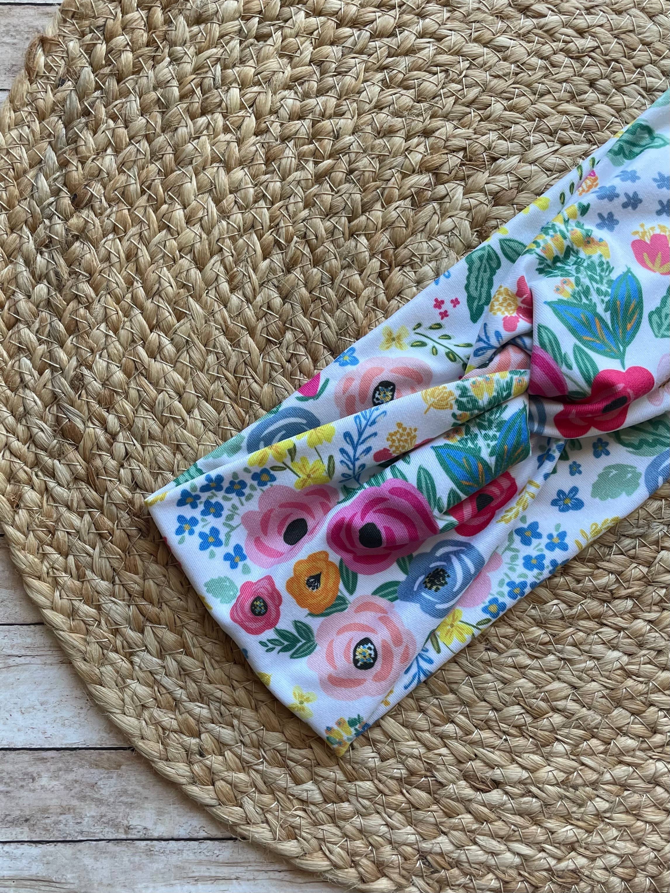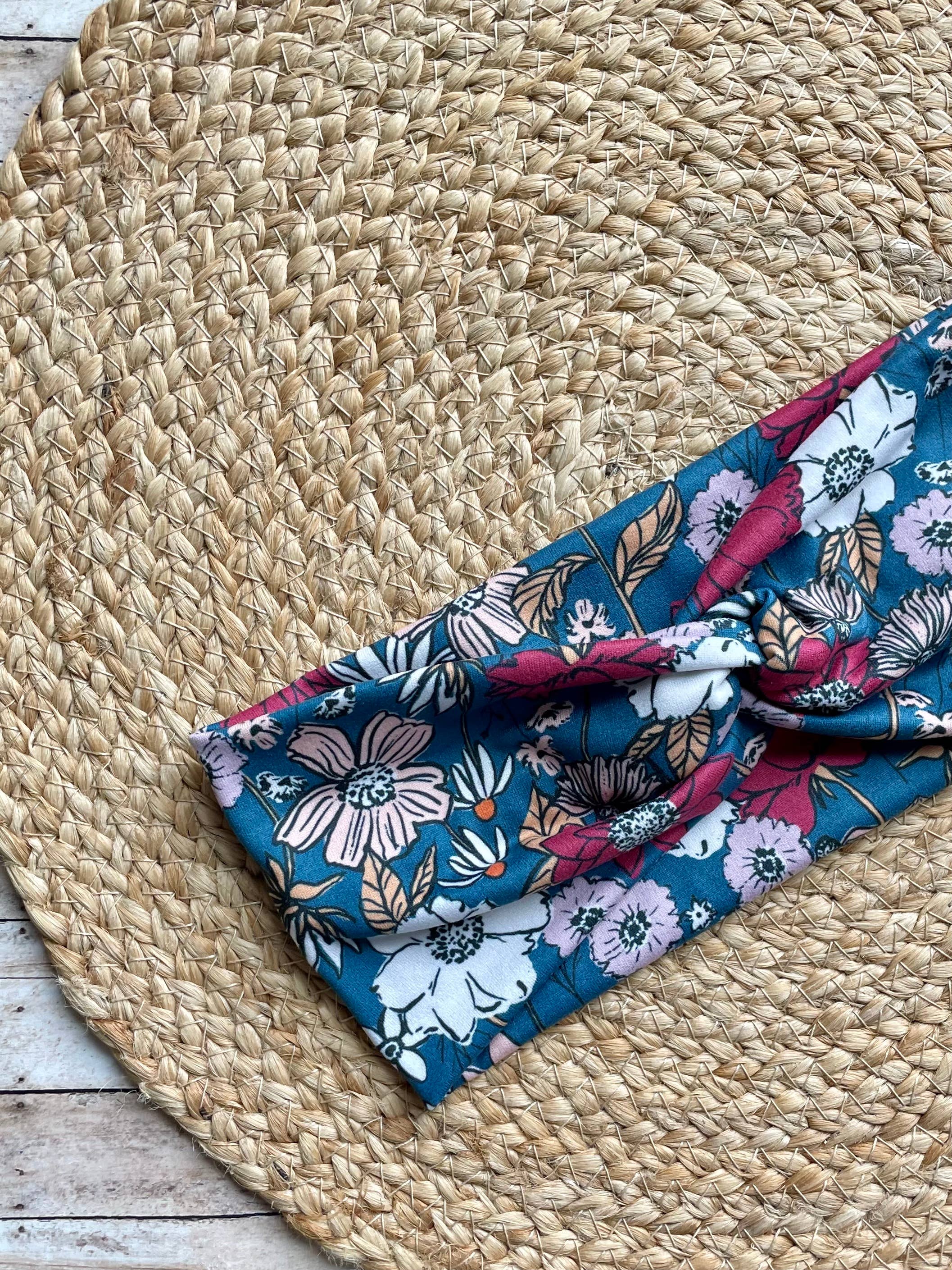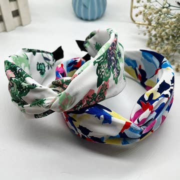 This soft knit headband is made from a designer polyester spandex fabric and is stitched to allow stretch. It is comfortable to wear all day! Exact patterns may vary. ~ SIZING: One size fits most teens / adults (19-20" around, 3.5 - 4" wide). ~ WEAR: The headband can be worn two ways - either with the twist knot on the top of your head, or with the knot underneath the base of your head. Works well either way! Headbands come with a display tag as pictured.