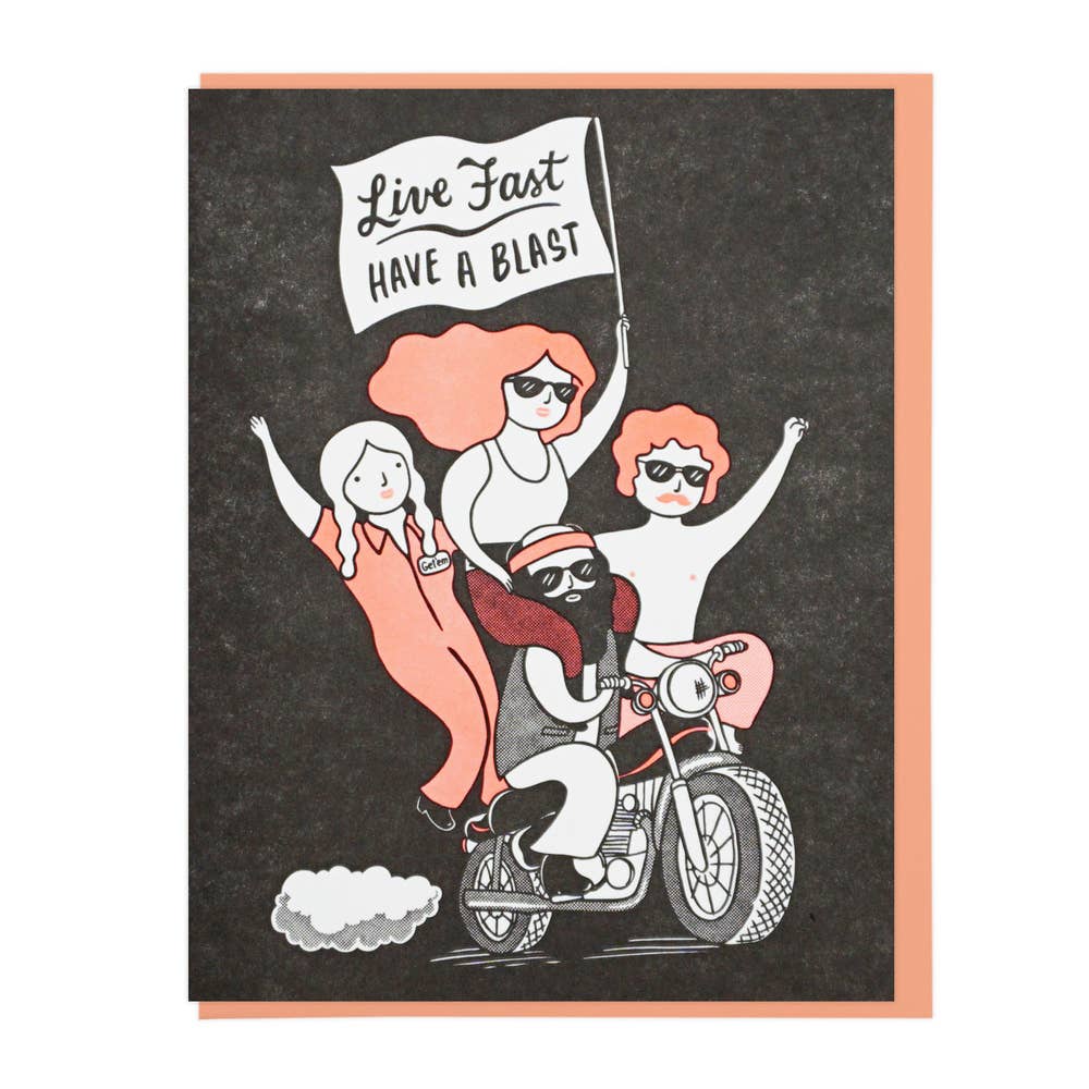 This high-quality greeting card measures 5 x 7 inches. It is blank inside. The card ships in a clear cello bag along with an envelope. This design is also available as a print and magnet. Made in the USA.