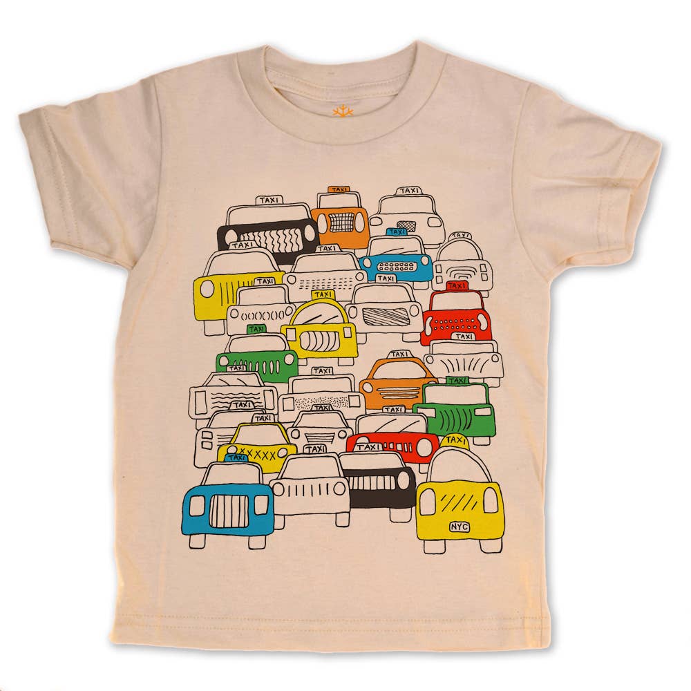 NYC Taxis... 100% organic cotton. Natural. Soft and comfy tag-less apparel. Designed in California.