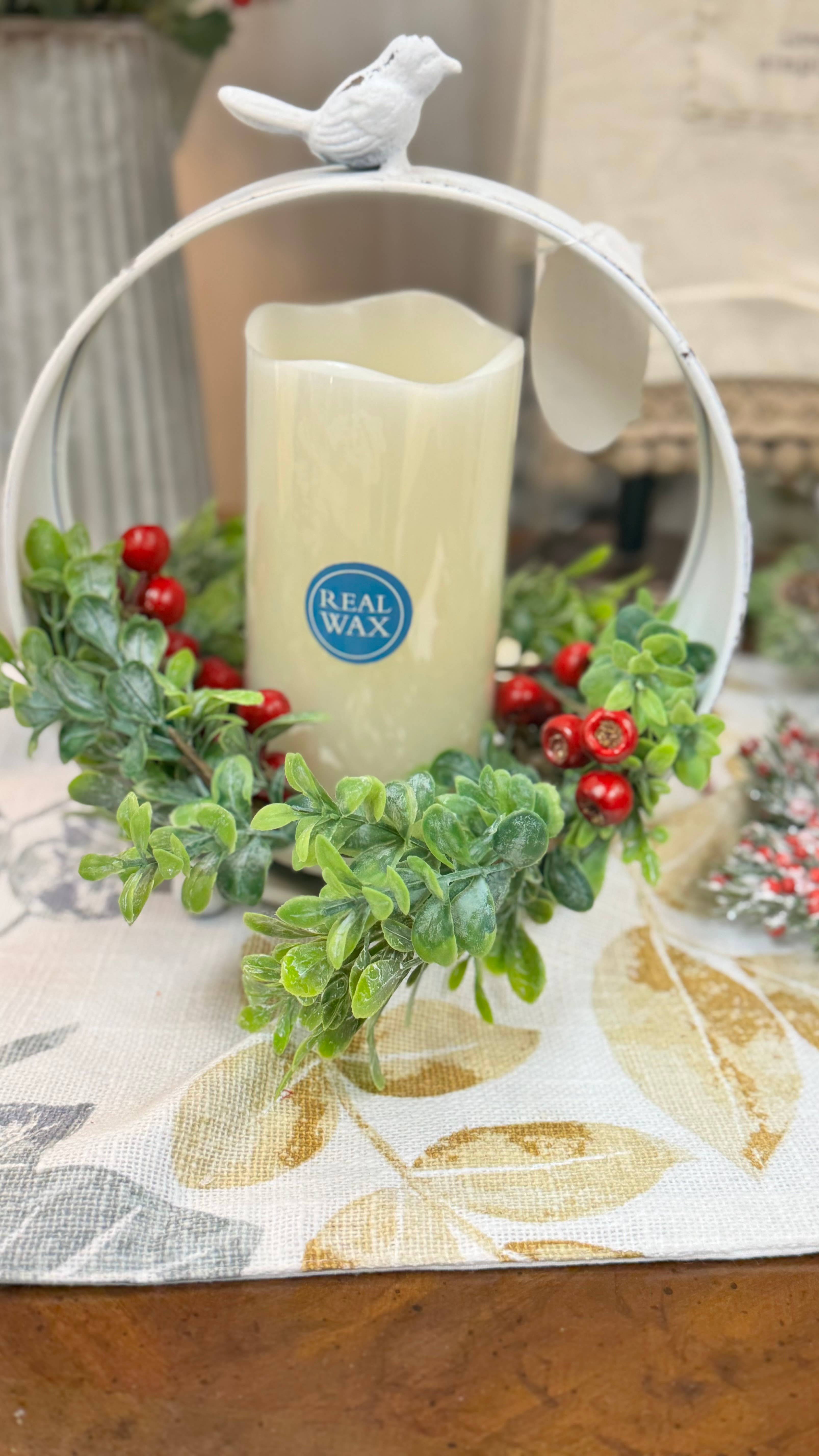Frosted Boxwood & Gooseberry Candle Ring, 3.5"