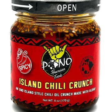 Our Island Chili Crunch is a vibrant fusion of crispy chili flakes and aromatic ingredients, brought to life with the tropical touch of Rice Bran Oil, one of the healthiest oils available! This blend celebrates simplicity, using select premium ingredients to achieve a perfect balance of mild spice and ‘ono (delicious) savory umami delight. Whether spooned over island poke bowls, sprinkled over tacos, pizzas, pastas or soups, Pono Foods premium Island Chili Crunch turns any dish into an island-inspired masterpiece. With the added benefits of heart-healthy fats (zero trans fat) and antioxidants from Rice Bran Oil, this is the perfect companion for adventurous and health-conscious foodies alike. Aloha shared daily, one crunch at a time!
