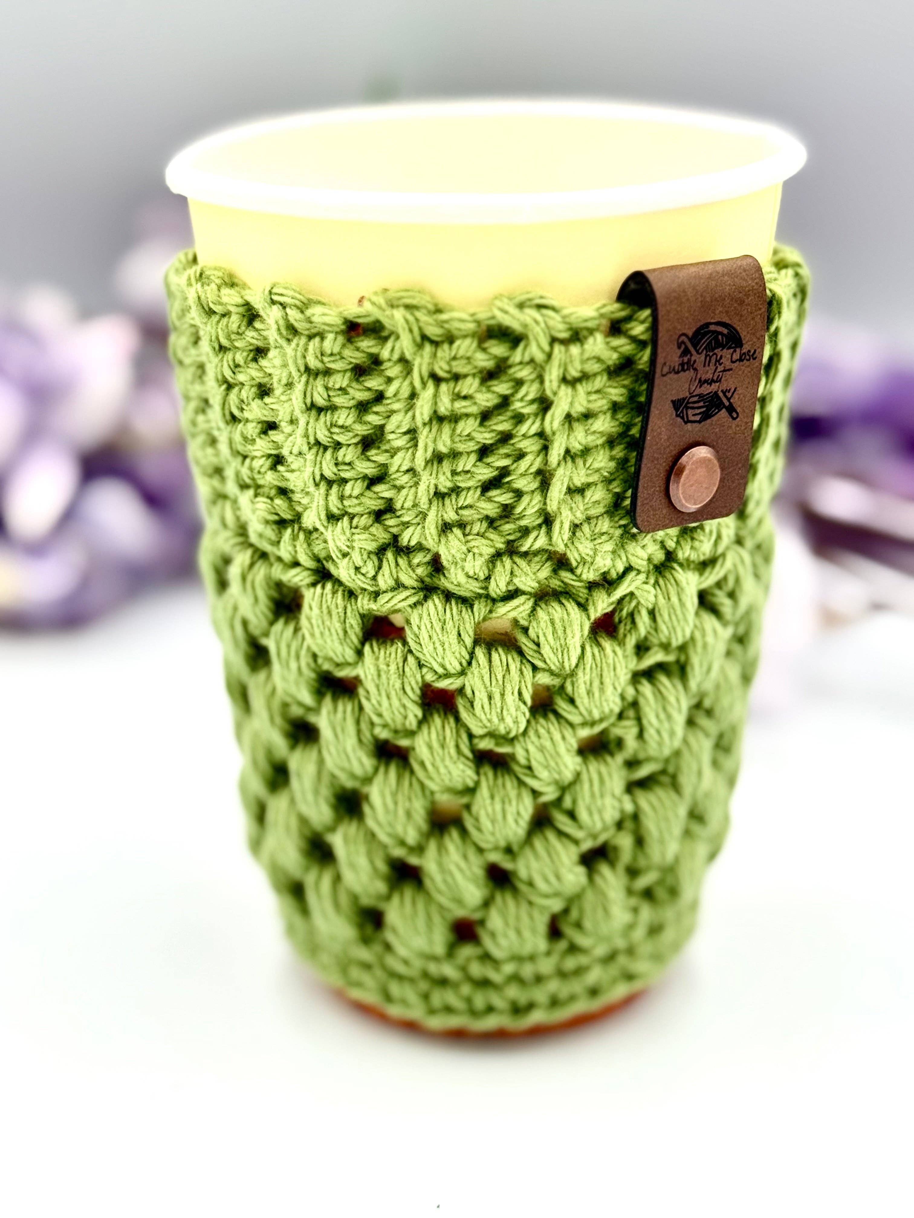 One handmade crochet pink, green, purple and blue variegated (tie-dye like) cotton cup sleeve Materials: 100% cotton variegated yarn Please note: Color pattern may vary due to yarn dye lots Color may vary slightly due to screen settings Care Instructions: Best when possible to spot clean. Otherwise, wash with cold water on gentle in either a lingerie bag or pillowcase. Lay flat to dry or on low heat/delicates. Do not iron, do not bleach Follow us on Instagram @CuddleMeCloseCrochet and be sure to tag us is your photos.