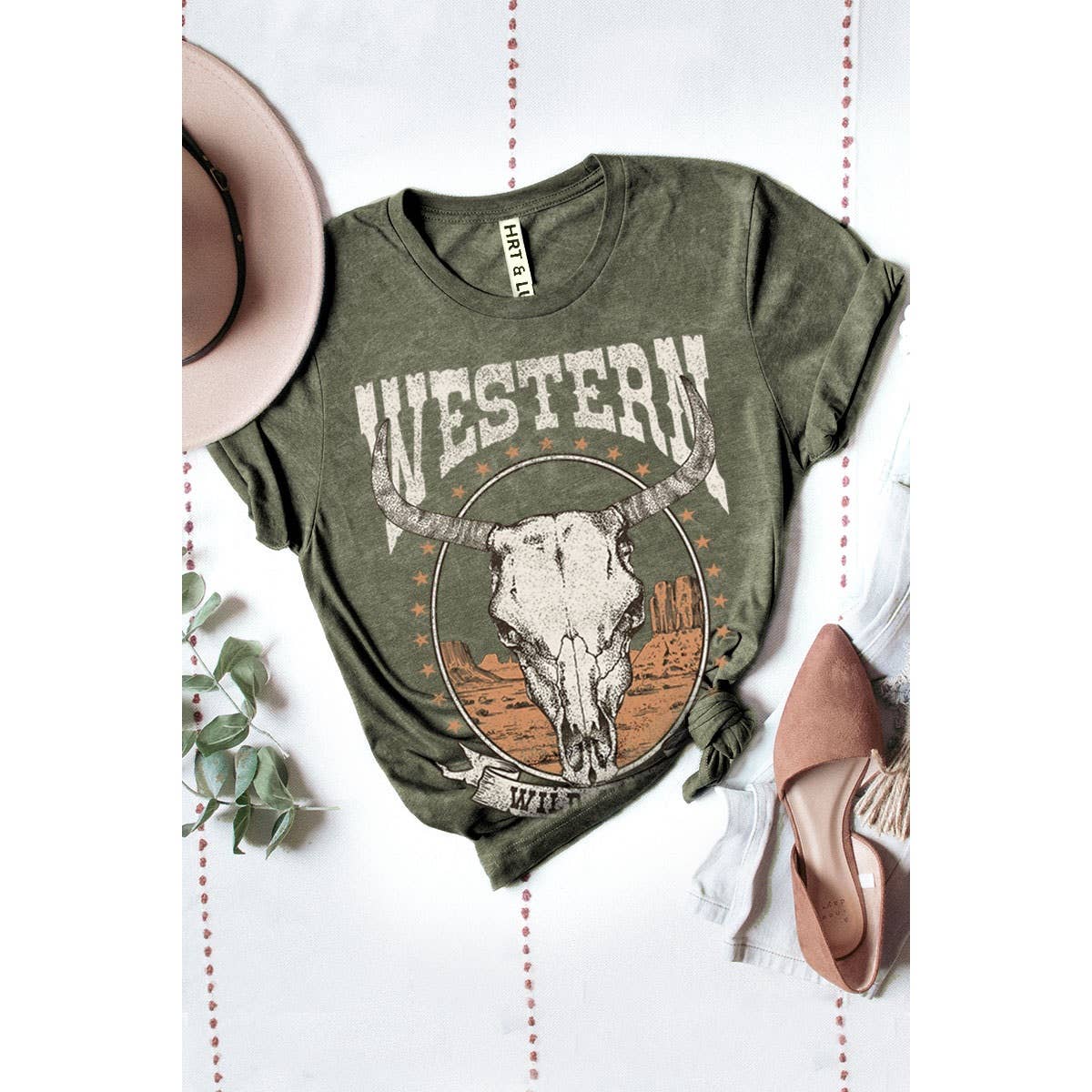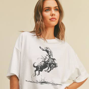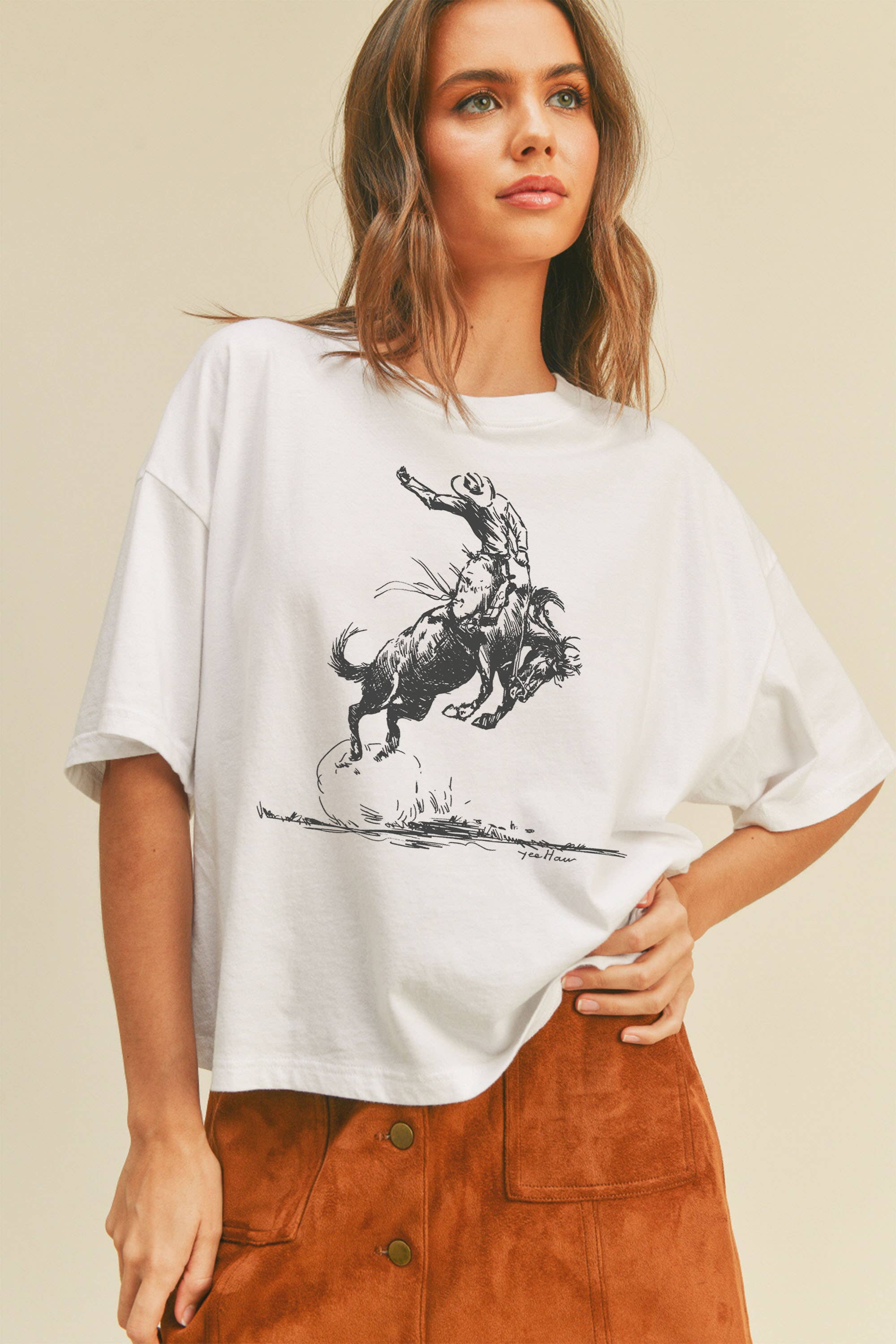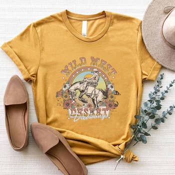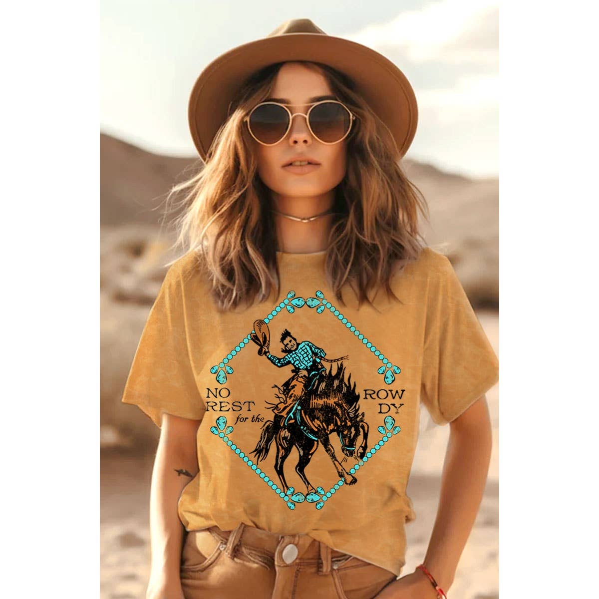 100% Cotton graphic short top with an authentic vintage look and a softer feel that is only possible to achieve by using our special enzymes to dye and mineral wash processes - Pre-shrunk - Washing Instructions: - Wash in cold water recommended - No bleach and preferably colors alike - Tumble dry low - Model is wearing a size Small (LENGTH: 21" / BUST:36") Graphic tee & top garment dye. Screen printed t-shirts T SHIRTS , SHIRT, WESTERN, COWGIRL, DESERT