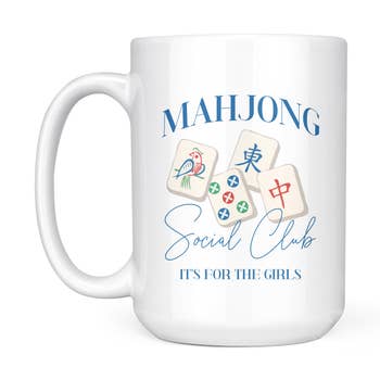 Mahjong Social Club - Mah Jong Coffee Mug Printed and Shipped in North Carolina Top Rack Dishwasher Safe. Double Sided Print.
