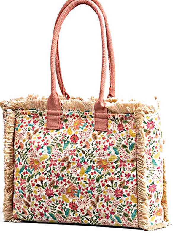 Beach Bag Quilted Cotton Shopping Bag Floral Printed Indian