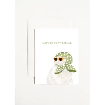 Wish your favorite cat lover a Happy Birthday with this fancy cat! Size: A2 4.25 x 5.5 in. Paper: Smooth card stock. (Blank inside) Envelope included.