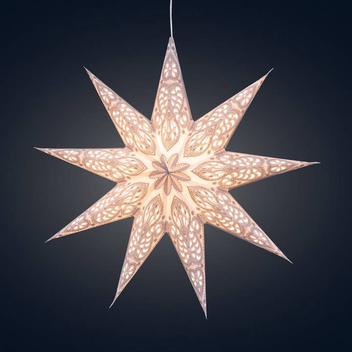 White/Red 19 Pointer Ø 7-inch Each handmade moravian paper star comes with a clear 12-ft cable, an energy saving LED bulb and a 5V AC Adapter, optional as add-on with a 5V USB Battery Pack. USB AC Adapter (always included)